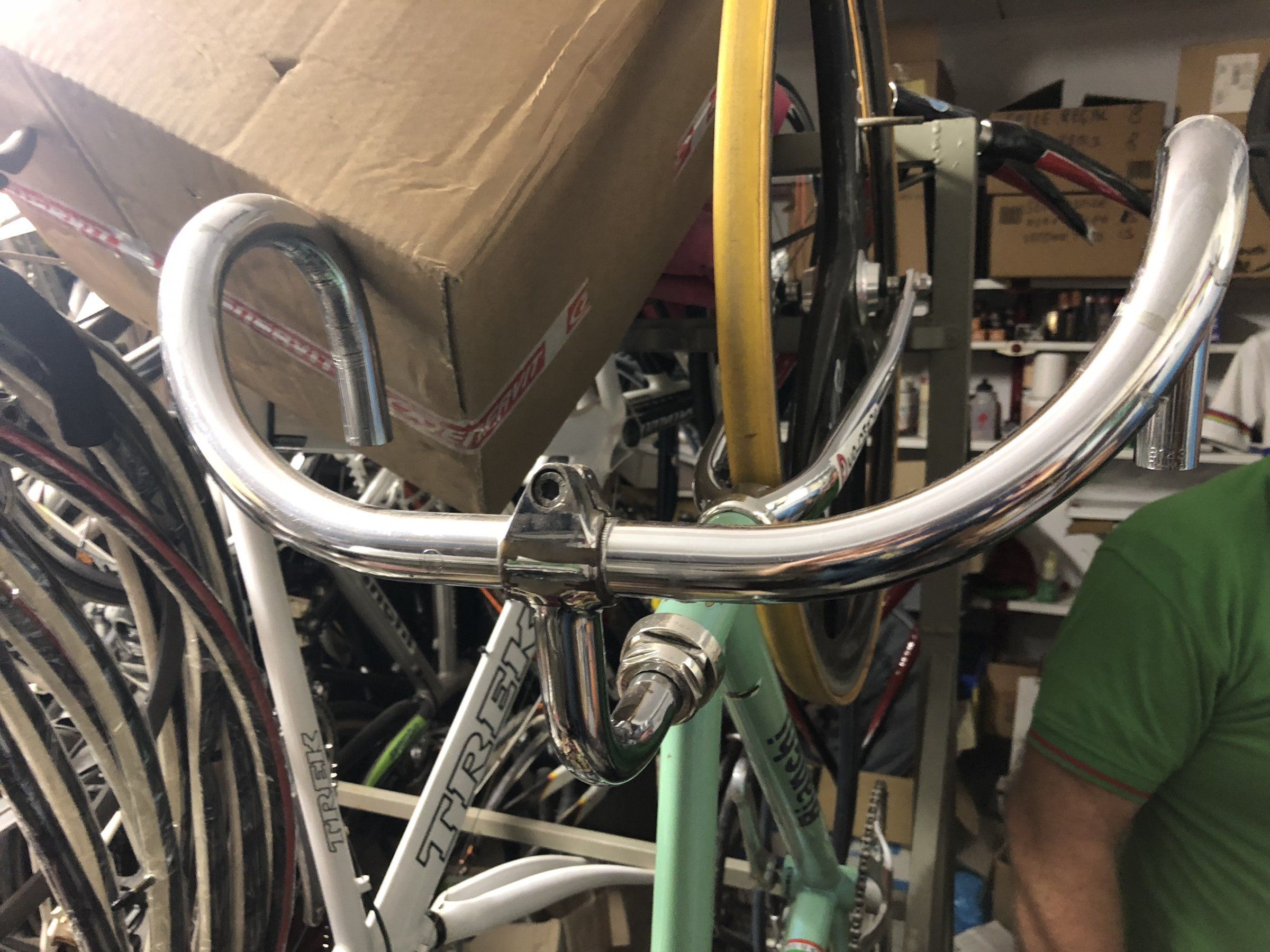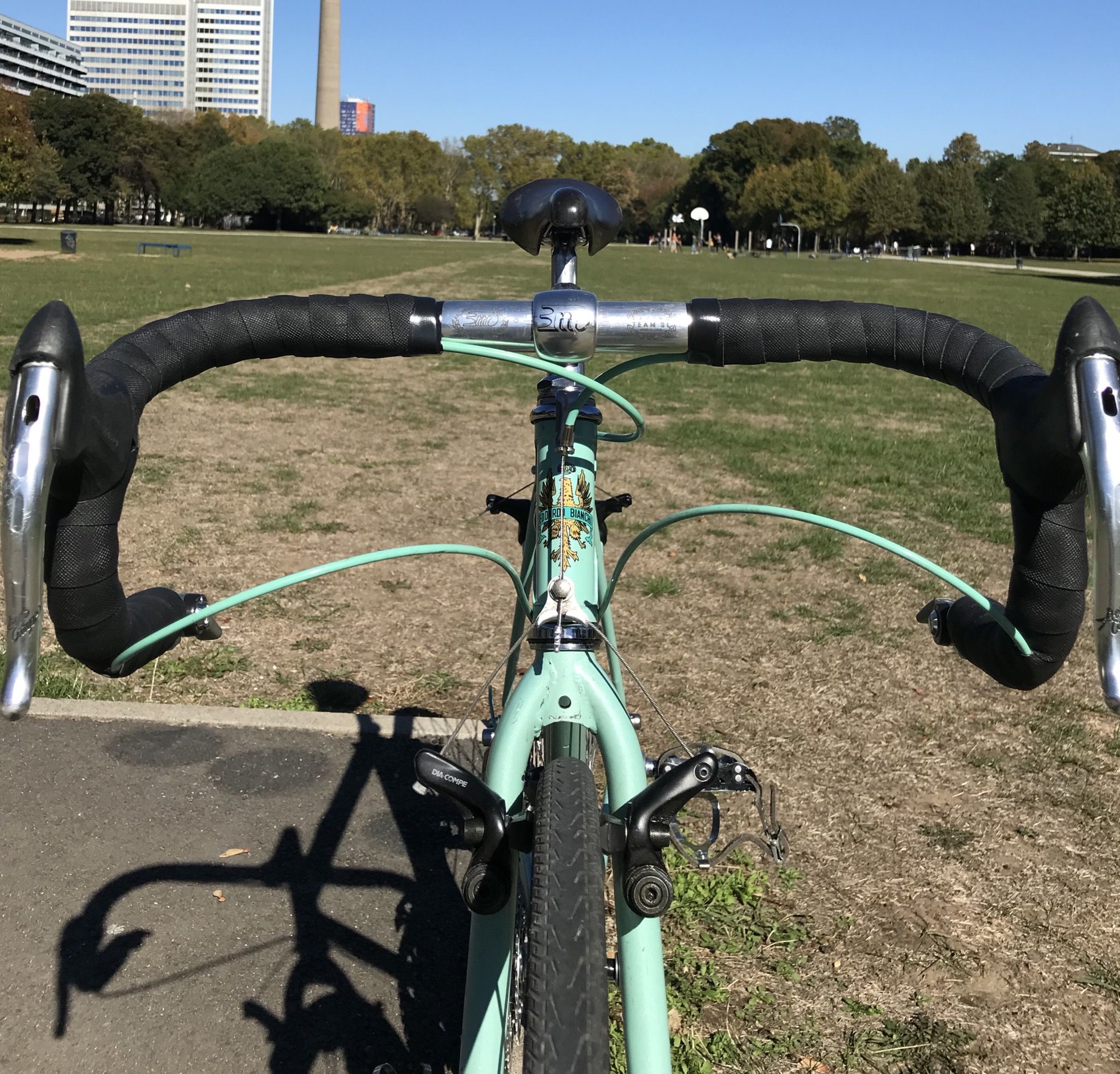 Ich habe es letzte Woche in einem einigermaßen bedauernswerten Zustand bekommen und ein wenig geputzt, poliert und ein paar Teile ersetzt (Lenker, Vorbau, Schalthebel, Sattelstütze, Sattel, Innenlager) und jetzt sieht es doch wieder ganz nett aus, finde ich.