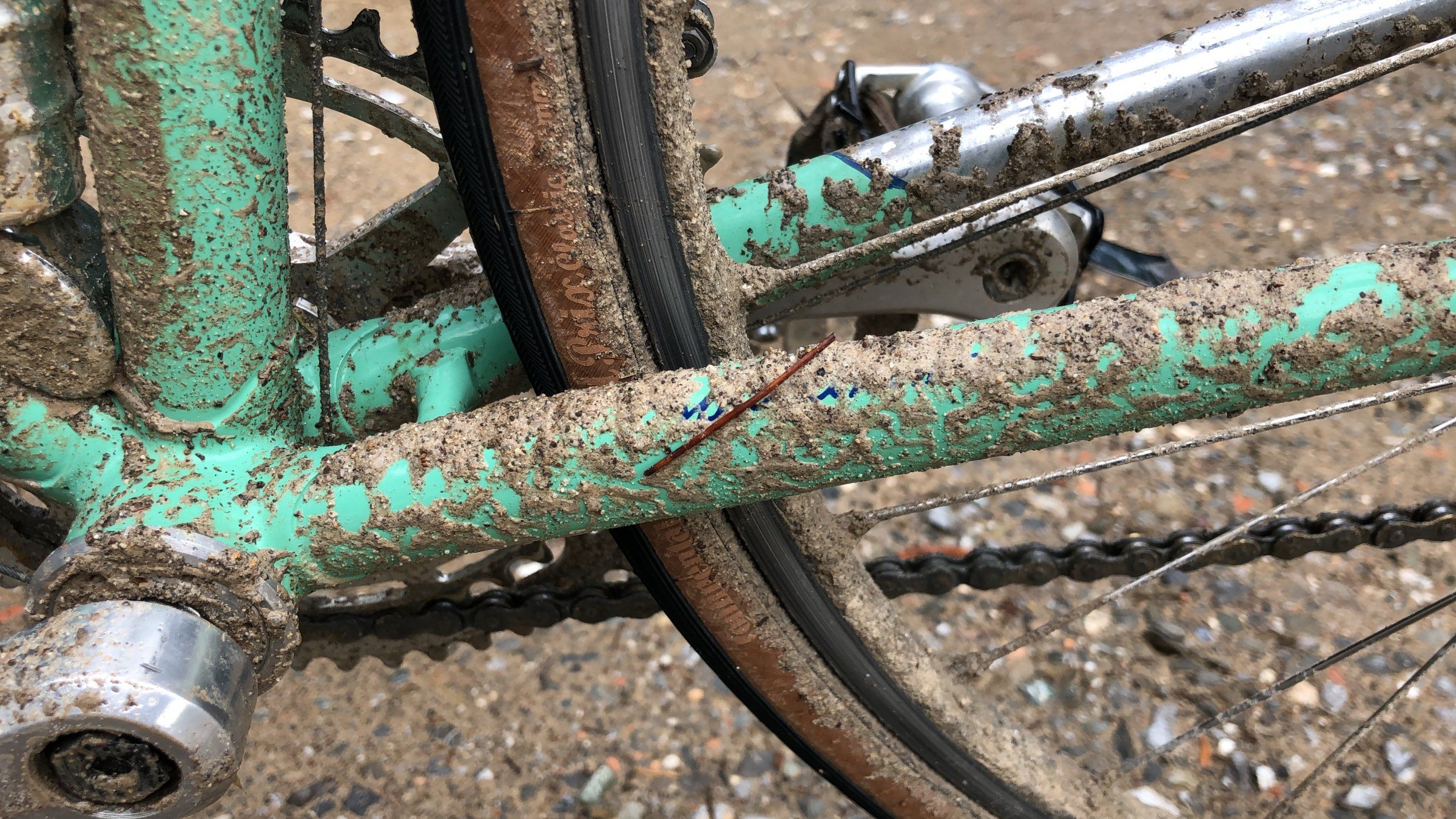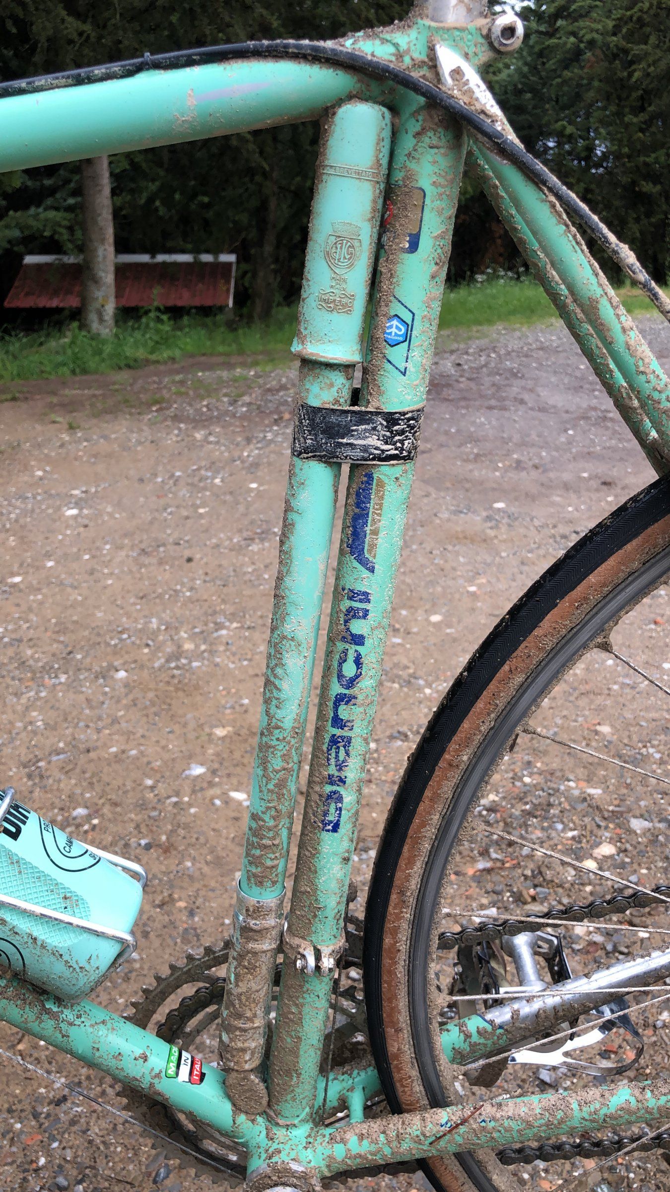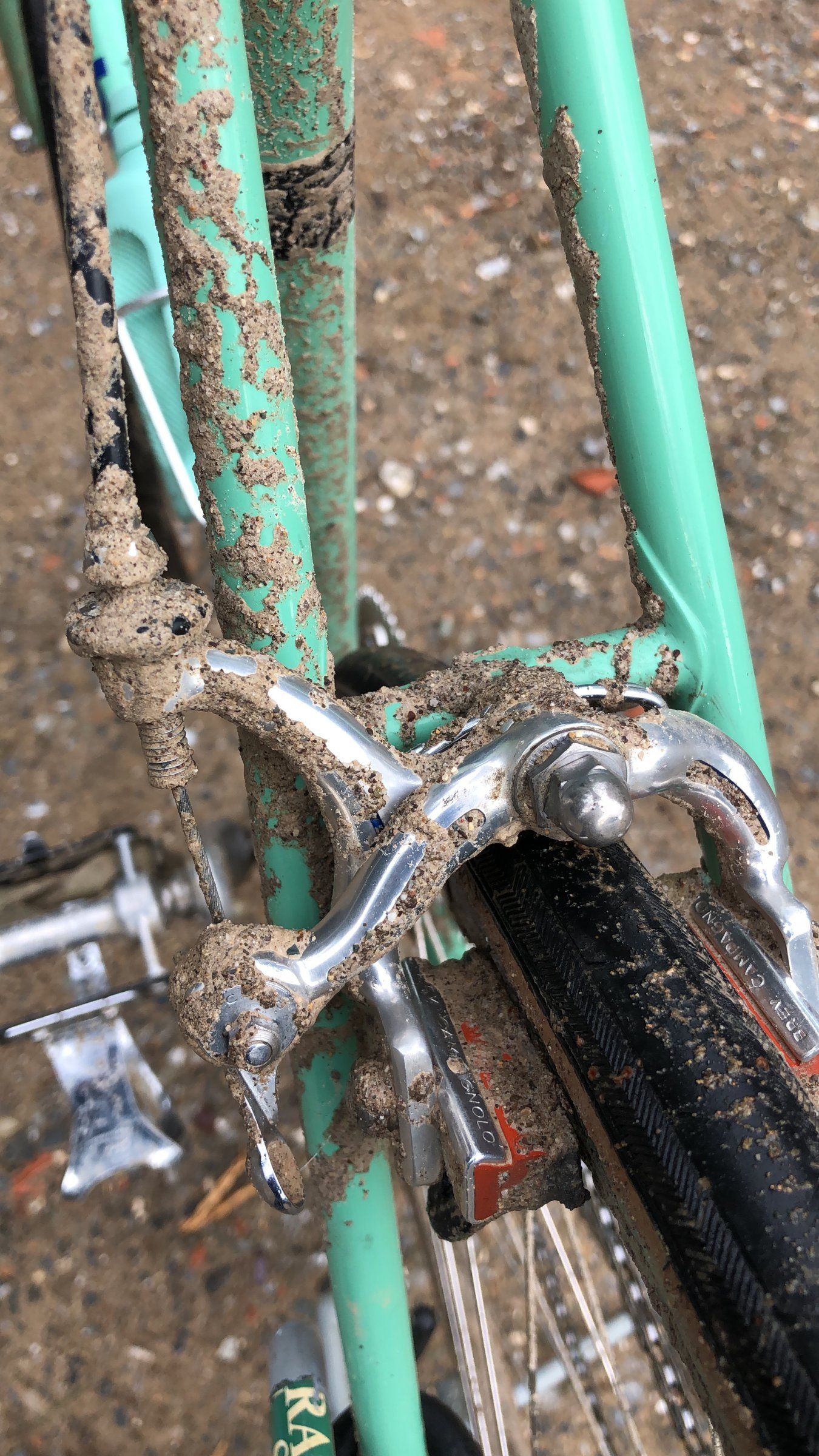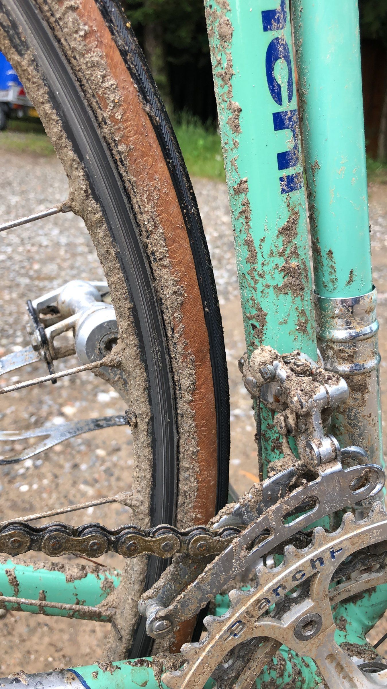 Das war 24 Stunden vorher noch sauber. Und während der Fahrt war es noch dreckiger und man konnte die Schriften nicht mehr erkennen. Aber der starke Regen auf den letzten 12Km hat etwas wieder abgewaschenDas Bianchi sieht aus als wäre es nach Jahren aus dem Schlamm gezogen worden.![]()