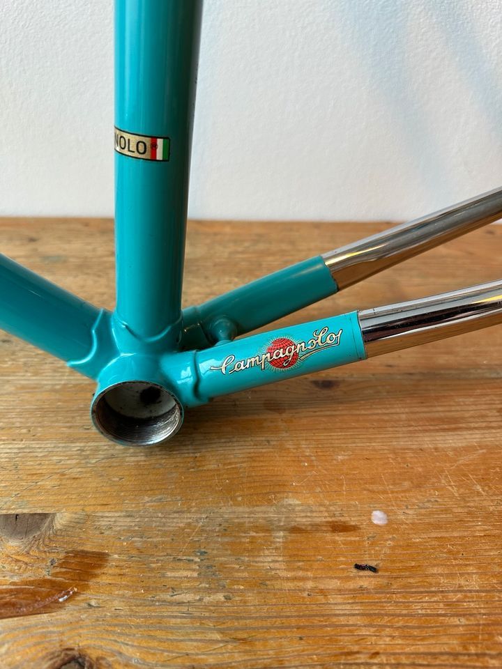 Ist vermutlich ein Colner (oder Colnago Sport). Ein echtes Colnago hätte mehr Gravuren. Die Gabel könnte von Daccordi sein. Warum man das Rad dann aber so lackiert oder gepulvert hat und Bianchi gelabelt hat, weiß ich auch nicht. Ein echt bunter Hund. Rahmen und Gabel sind aber keine schlechten Teile und schon italienisch.. Schön aufbauen und ein absolutes Einzelstück fahren.