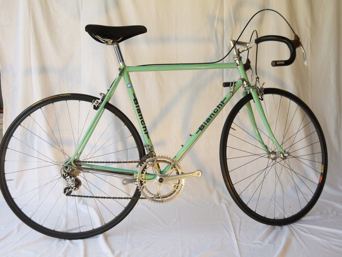 Heute ist endlich mein Rekord 748 fertig geworden. Ein schwacher, aber doch ganz schöner Trost für das Specialissima, welches ich kürzlich abgegeben habe. Ich habe das Rad in ziemlich miesem Zustand bekommen. Laut Vorbesitzer sei das Rad von 77, vielleicht kann das jemand bestätigen. Leider ist noch nicht alles ganz stimmig, aber es fährt sich schon mal prima. Die Bremshebel sind etwas hoch geraten (blöderweise habe ich das Lenkerband gewickelt, bevor ich das erste Mal fuhr). Der hintere Bremszug muss noch ein kleines Stück gekürzt werden. Zum ersten Mal habe ich Schlauchreifen geklebt und gleich mal den hinteren falschherum (Aufdruck auf linker Seite, dabei achte ich bei anderen Rädern immer penibel auf sowas...). Eigentlich gehört an das Rad wohl ein Nuovo Valentino Umwerfer, da hatte ich aber keinen schönen mehr. Der Sattel ist normalerweise braun und mit Bianchi Aufdruck, der 3ttt aber deutlich schöner. Ich hatte auch neue Decals bestellt, die sind beim Umzug aber verloren gegangen.
