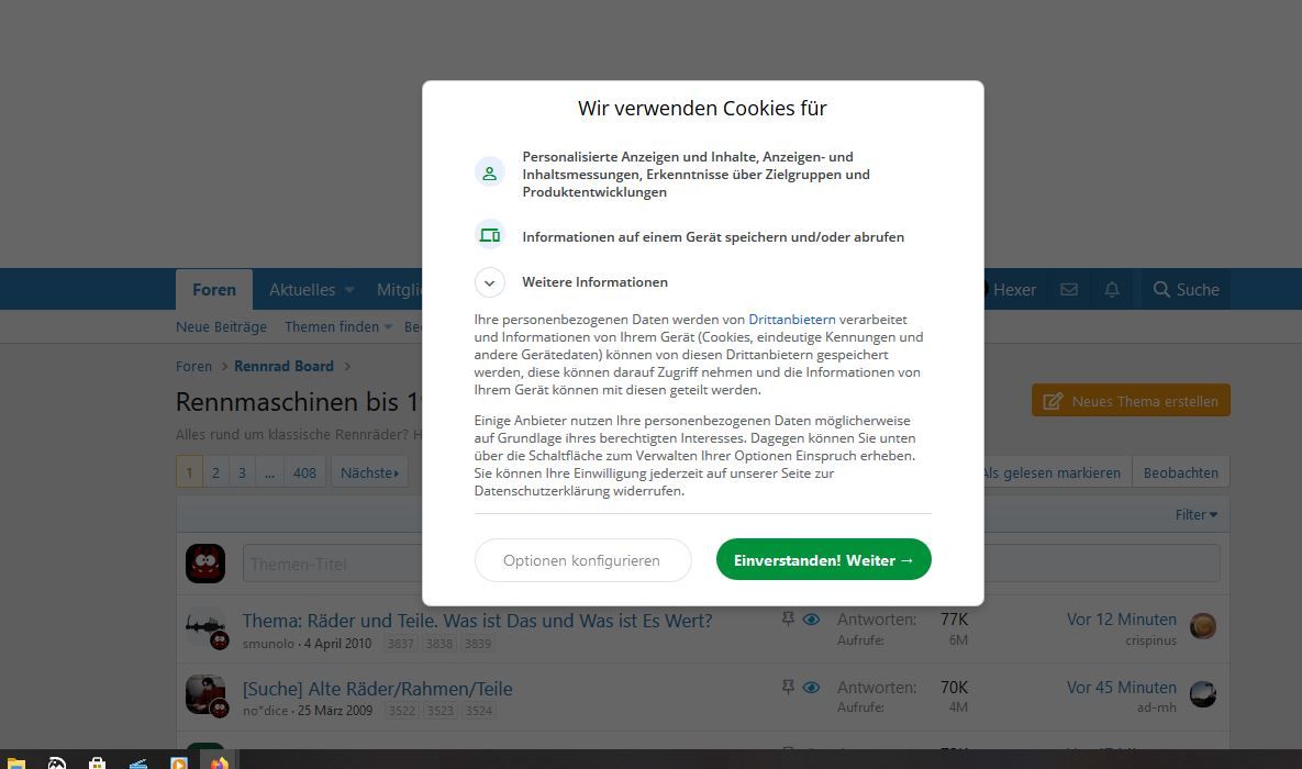 Hier im Forum hab ich Ruhe. Bei MTB-News bekomme ich es nicht weg, da ploppt es ständig auf und lässt sich nicht weg bekommen. Wieso? Keine AhnungBekommt Ihr eigentlich auch dauernd diese bescheuerte Meldung? Anfangs konnte man die grünen Stöpsel abschalten und es war Ruhe, jetzt kommt das nach jedem Klick...
