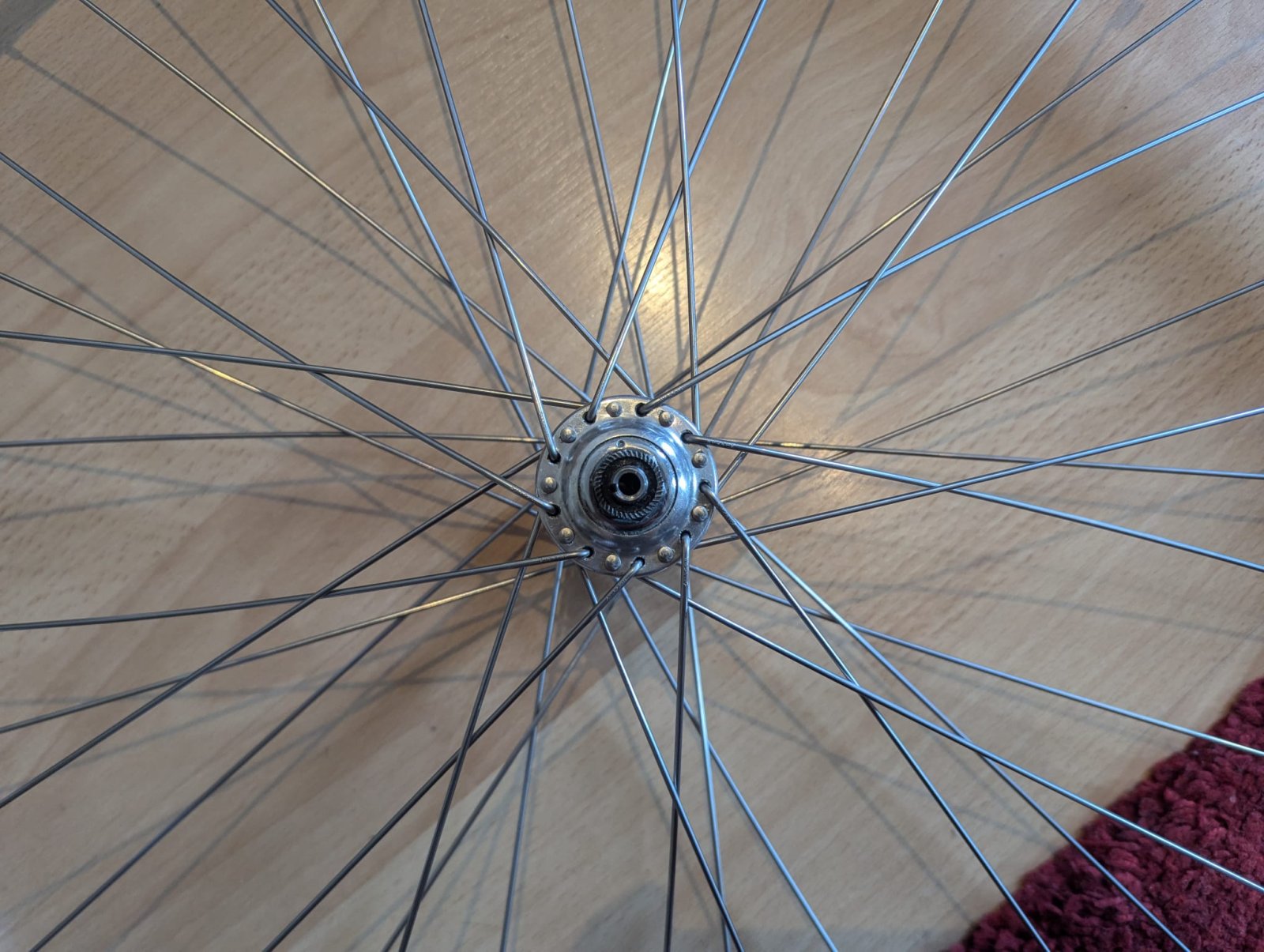 In den 80er und 90er Jahren praktizierte ich eine andere Einspeichmethode (gleich alle Speichen in die Nabe einfädeln und dann diese mit der Felge verbinden), habe diese aufgrund einer längeren Schrauberpause (von mehreren Jahren) jedoch "vergessen" und habe mich dann in den 10er Jahren mit der Methode von Sheldon Brown angefreundet (wobei ich mir nicht sicher bin, ob die nicht ursprünglich von jemand anderem, z.B. von Jobst Brandt stammt).