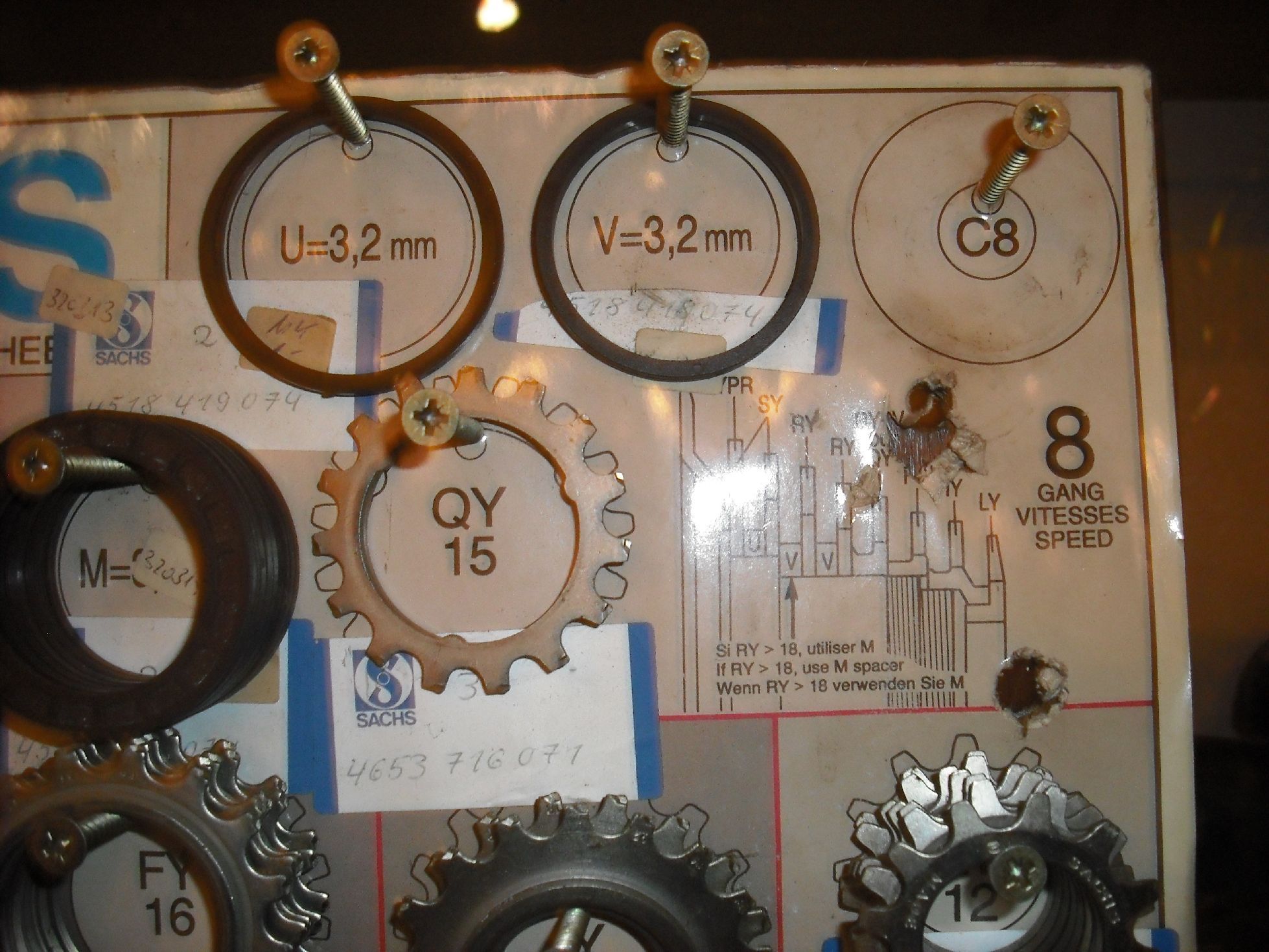es gab für Händler von Sachs in den 90er ein Poster, wo alle Body`s , Ritzel und Spacer abgebildet waren, 6, 7 u. 8Fach . Dieses habe ich damals auf ein Holzbrett geklebt, und somit mit hatte ich eine sehr gute Übersicht, was damals mit den Aris Kränzen für Kombis möglich waren. Die Teile habe ich mit Spaxschrauben auf dem Brett fixiert. Ich mache morgen mal ein Bild.