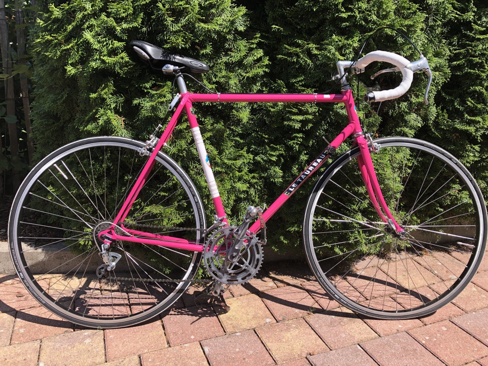 Hallo zusammen. Spannend, dass es tatsächlich diese Seiten für die Le Taureau Renner gibt. Hier ein Bild von meinem Rad. Das hat mein Vater mit mir 1977 gebaut, da war ich 14. Die Teile haben wir in Stuttgart in der Johannesstraße geholt, und dann mit dem Einspeichen der Räder angefangen...Mercier-Rahmen aus Reynolds-Rohren, TTT-Vorbau, Campagnolo 10-Gang-Schaltung, später auf 12 Gänge umgerüstet. Vorne Weinmann Seitenzug, hinten Mittelzugbremse.