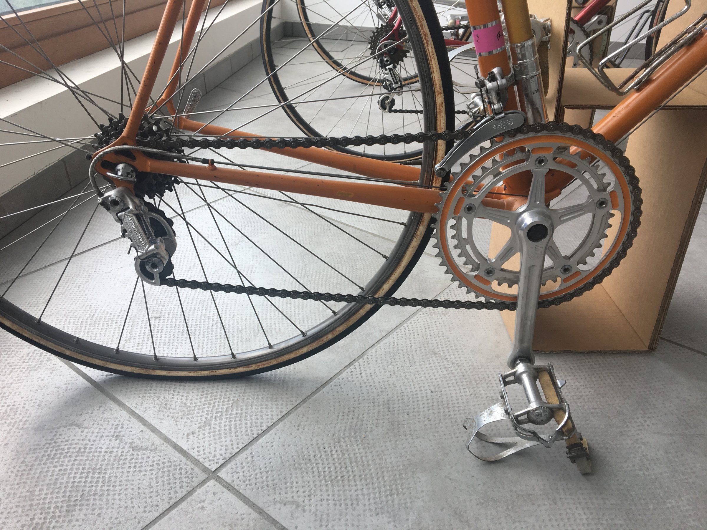 Damals mein Einstieg in die Klassiker und blauäugig als gepulvertes Speedbike mit Ultegra SL und geradem Lenker gekauft, soll es nun in den Ruhestand. Diverse Ausbaustufen hat es hinter sich, aber ein Klassiker ist es nie wieder geworden. Leider war es mir immer zu klein und mittlerweile ist mir die Überhöhung echt zu derb. :(