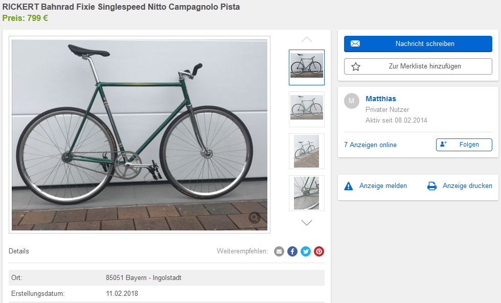 Wenn du nicht versenden willst. Ich komme in nächster Zeit wieder häufig an Ingolstadt vorbei und durchquere auch das ElbtalDanke! Ich hatte ja auch 10x überlegt. Aber netter Typ, hat mich ertragen. Muß noch klären, ob die Kurbel auch mit zu mir kommt.