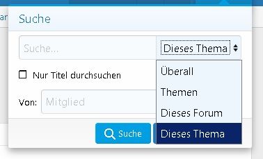 stimmt. vielleicht mal nen admin ansprechen?Aber es fehlt die Einschränkung des Datums. Wenn ich in die erweiterte Suche gehe, ist das Dropdown-Menü mit „dieses Thema“ futsch.