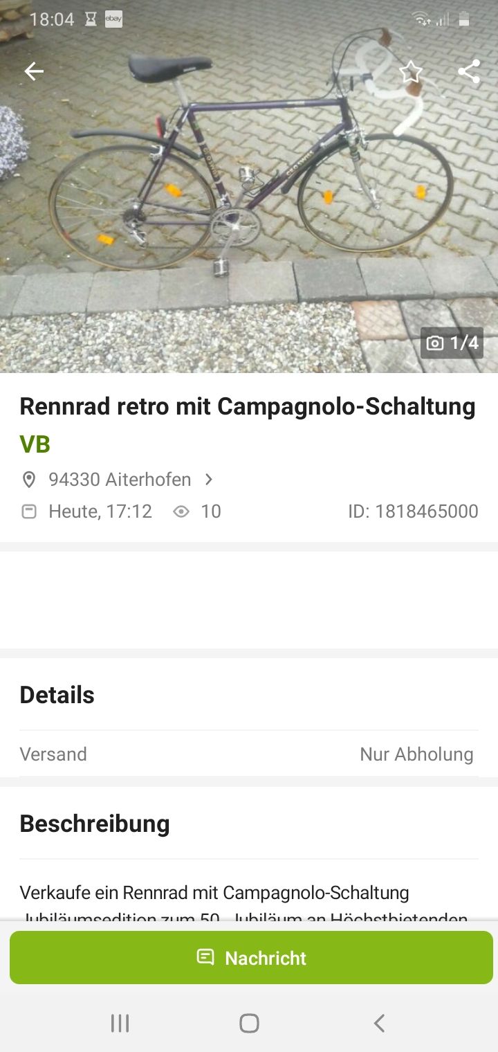 Danke für die Einschätzung, immer spannend für mich da dazu zu lernen. Hatte nur auf die Ausfaller geachtet, ob es wirklich ein Bahnrad sein könnte, was ich auf den Fotos nicht erkennen konnte. Aber jetzt seh ich auch das Schaltauge, also wohl sicher keins.