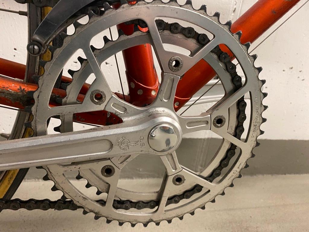 Ich hatte da mal nach mehr Bildern und Größe gefragt. Ziemlicher Teile Mix. War wohl mal eine komplette Gran Sport Ausstattung. Jetzt nur noch Umwerfer, rechte Kurbel, Pedale, Hebel,