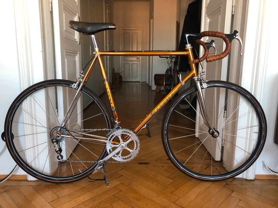 Alles andere als ein Schnapper....falsche Bremsbeläge für die Ceramic-Felgen, ungünstig und falsch verlegte Seilzüge...aber dieser Rahmen...mit dieser Gruppe....mehr braucht man eigentlich nicht:
