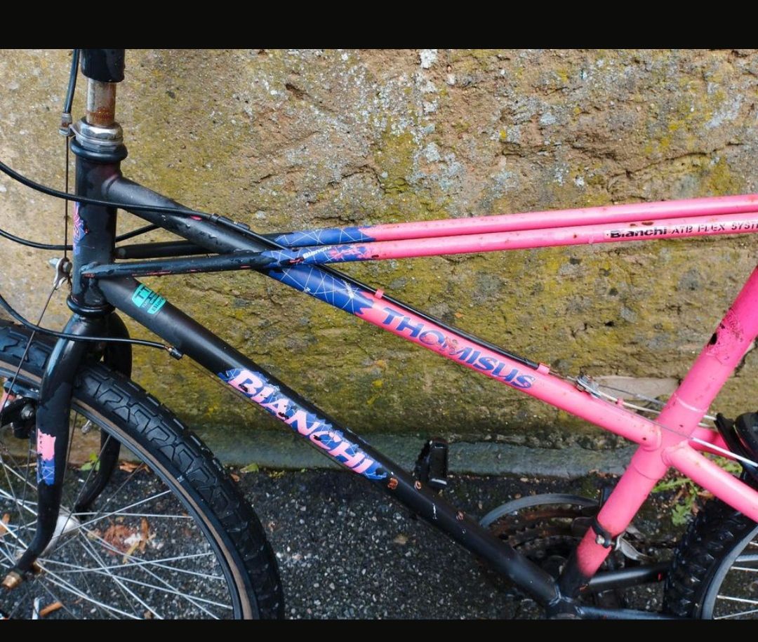 Anfang der 1990er Jahre hat das gute Bianchi Thomisus Teenieherzen höher schlagen lassen. In dem Alter war die Frage nach dem wichtigsten Qualitätsmerkmal eines Velos: "Wie viele Gänge hat dein Fahrrad?". Und .... Trommelwirbel ... das Teil hatte s a g e n h a f t e 21 Gänge. Bis dato waren die mit 18 Gängen King bzw. Queen. Gleich zwei Mädels in der unmittelbaren Nachbarschaft hatten das Rad in der gleichen schwarzvioletten Lackierung – weiß ich bis heute.
