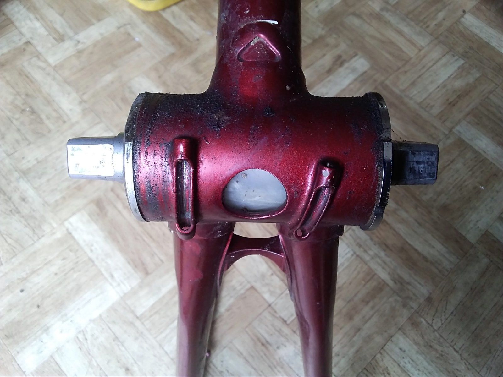 Komisch das der Rahmen nicht die typischen Verstärkungen unter den Kettenstreben hat,vermutlich wegen der kleinen Rahmenhöhe?Diese Rahmen hat Rickert ab Ende der 80er bis Anfang der 2000er Jahre gebaut.