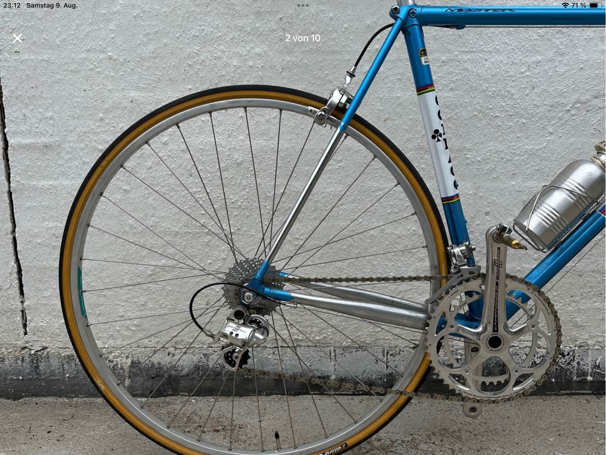 Die bunte Bieterschlacht hat begonnen. Handelt es sich dabei nicht um ein Nuovo Strada, welches von Billato gebaut wurde?Da täte es in München ein Masi für 200€ geben, ich fürchte allerdings, das der Preis nicht Bestand haben wird.