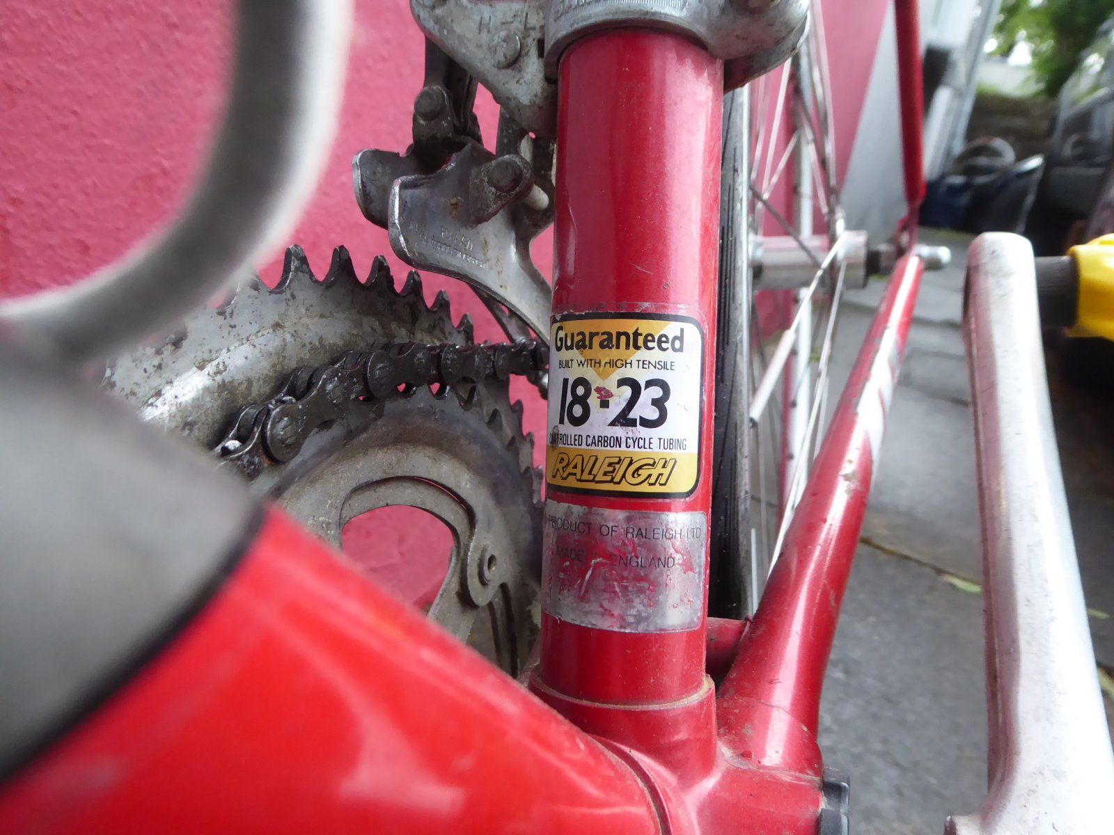 Ach Mist! Ich dachte, ich hätt auch ein Foto von dem Rohrbapper gemacht, ganz unten am Sitzrohr: das war irgendwas mit Raleigh-Unterschrift und eine durch ein Symbol getrennte Nummer, ich glaub 12...30 oder so. Und eine weitere Frage zu dem Sachs Huret SW: hat das eine Feder direkt um den Befestigungspunkt? Die wäre ja wohl hin... Das