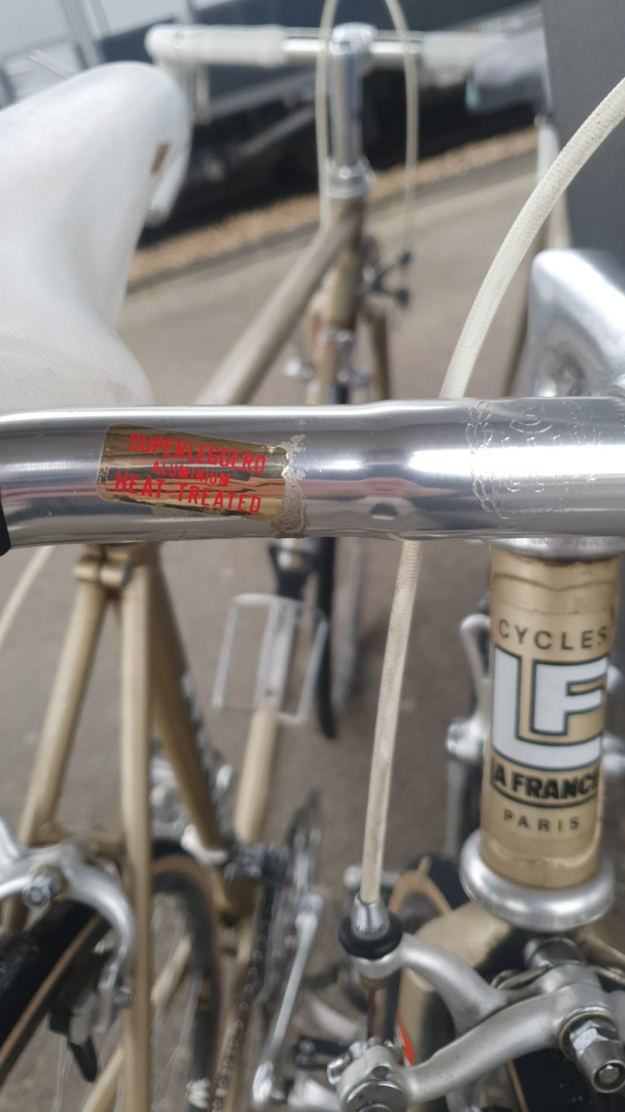 Jetzt bin ich mir nicht mehr so sicher ob das nicht ein Sakrileg ist und ob ich wenigstens versuchen sollte das Rad, ohne die Campa-Teile, in einen französischen zeitgemässen Zustand zu versetzen. Das wäre natürlich etwas Arbeit und leider ist es mir viel zu klein (RH53) und meinem Jüngsten zu groß (und wohl nicht "blau" genug). Lohnt sich also der Aufwand? Für späteren Gesamtverkauf sicher kaum.