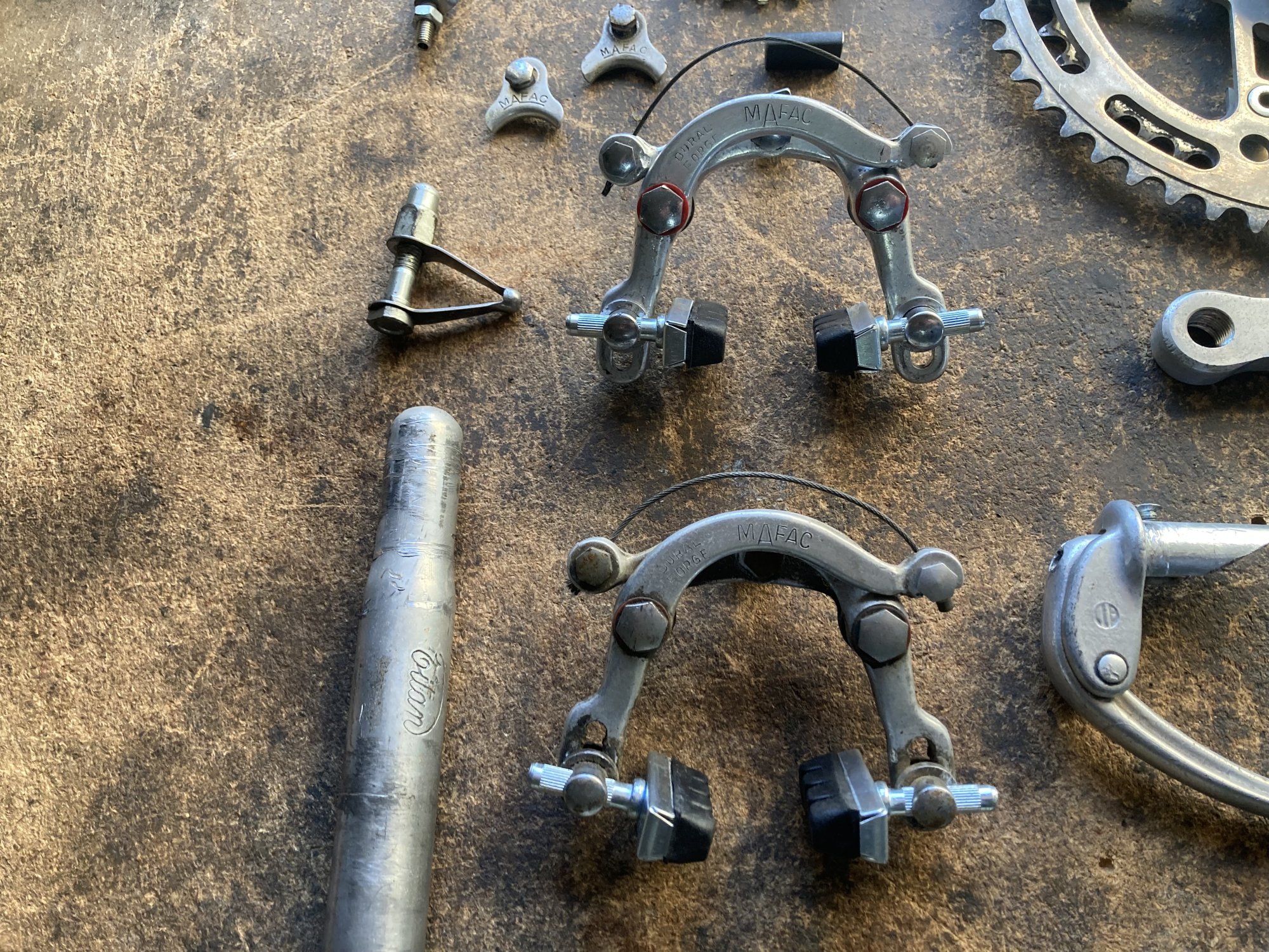 Mafac Racer - Bremsklötze neu - eine gereinigt - eine dreckig - komplett mit allen Haltern - 20 Euro