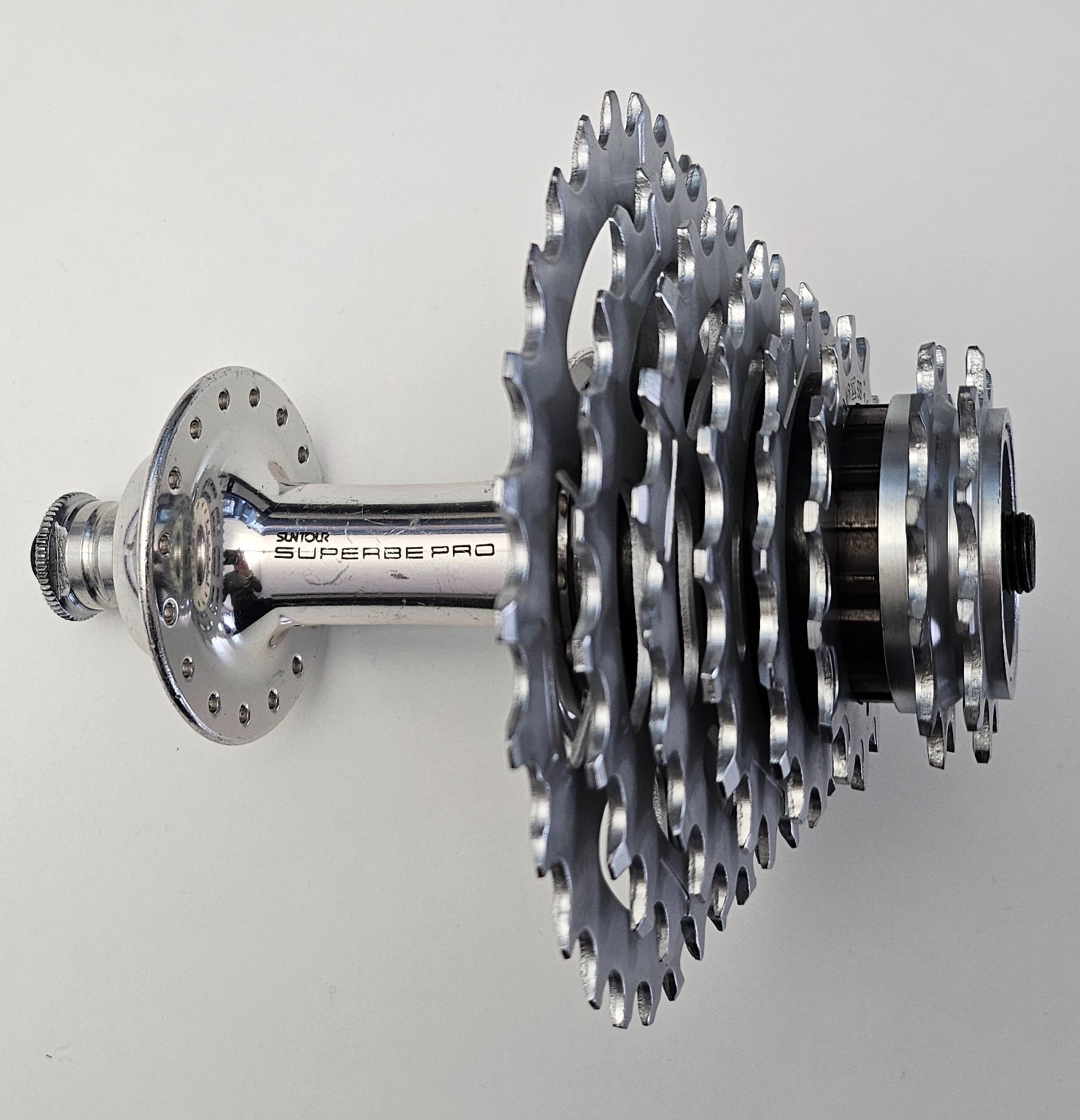 Nicht sicher bin ich mir beim Umwerfer und habe das noch nie ausprobiert. Auf dem schlecht gescannten Foto sieht er ja auch nach Superbe aus, also sollte das gehen.