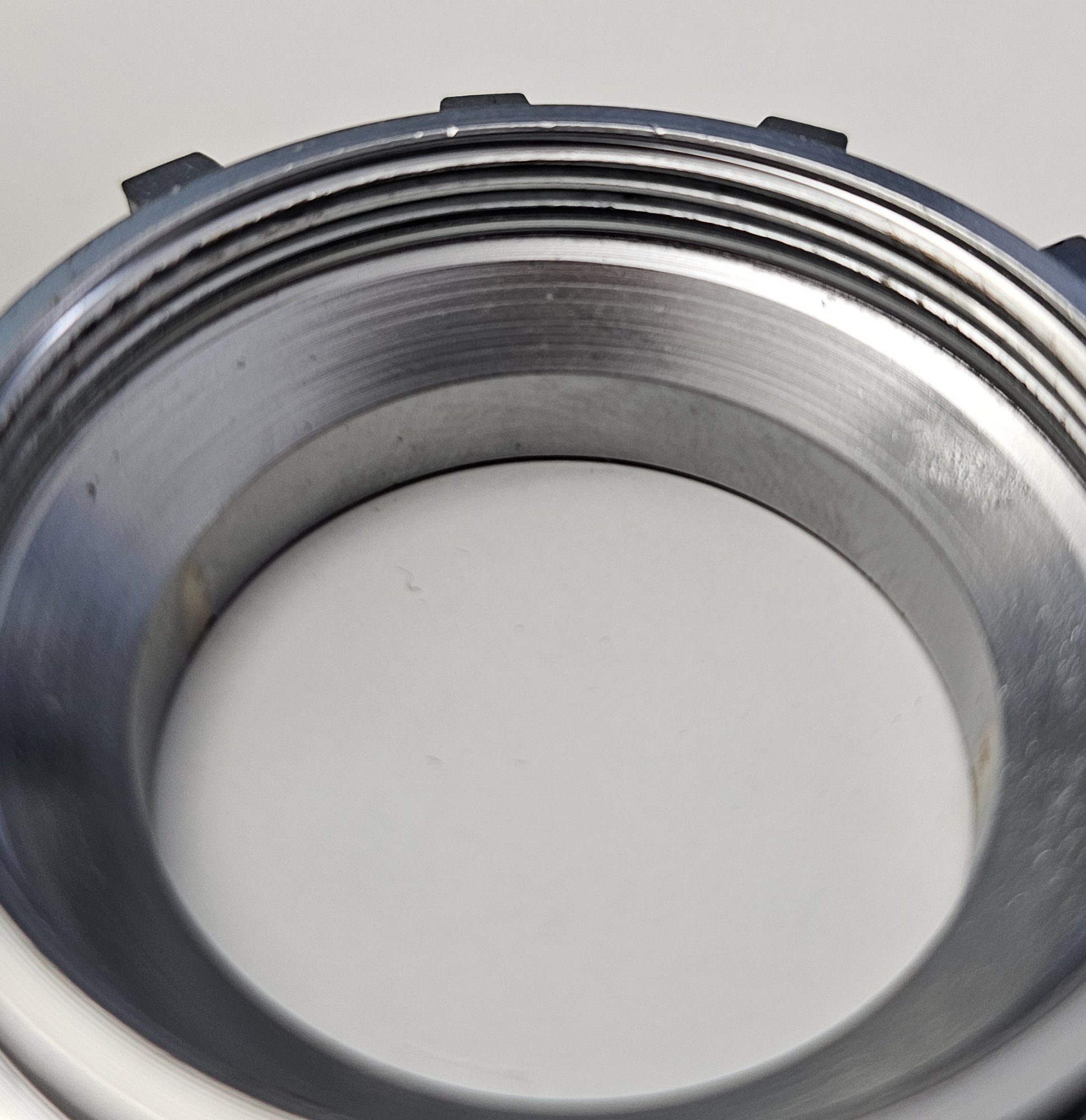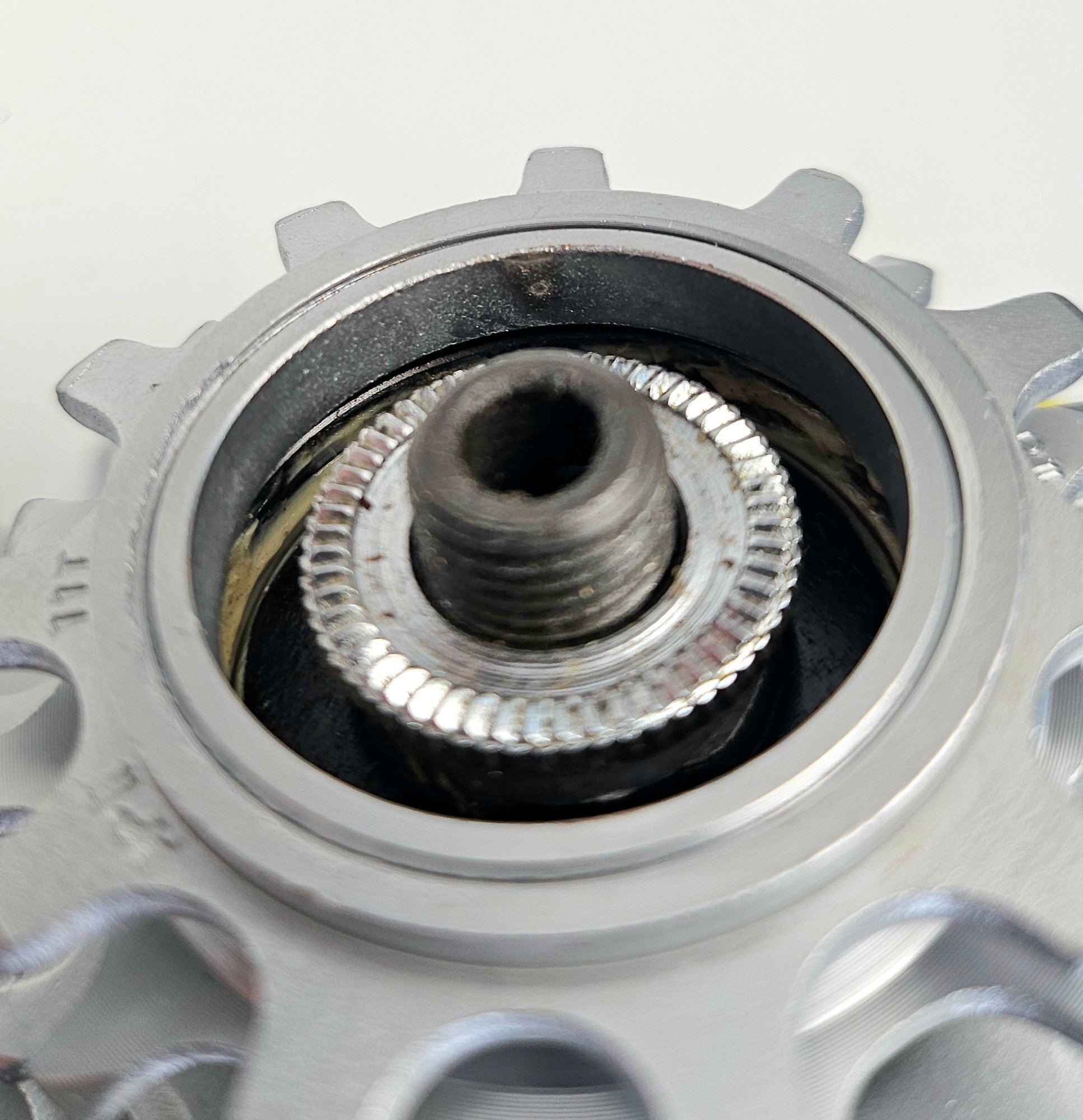 Beim Superbe-Schaltwerk ist dann leider eine stylische Kante neben der Klemmschraube im Weg, wo man eine Kerbe für den Zug reinfeilen kann (besser, aber dann halt für immer drin), oder eine zusätzliche Unterlegscheibe verwenden (schlechter).