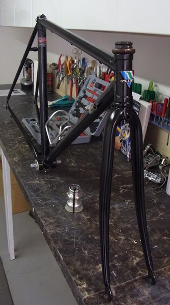 Kleiner Zwischenstand nach 2 Lagen Grundierung, 3 Lagen Decklack, 2 Lagen Klarlack....jetzt soll er erst mal schön durchhärten und morgen wird der Steuersatz gewechselt ! Danach gucke ich mal nach den Decals und dann geht erst mal Step by step der eigentliche Aufbau los.