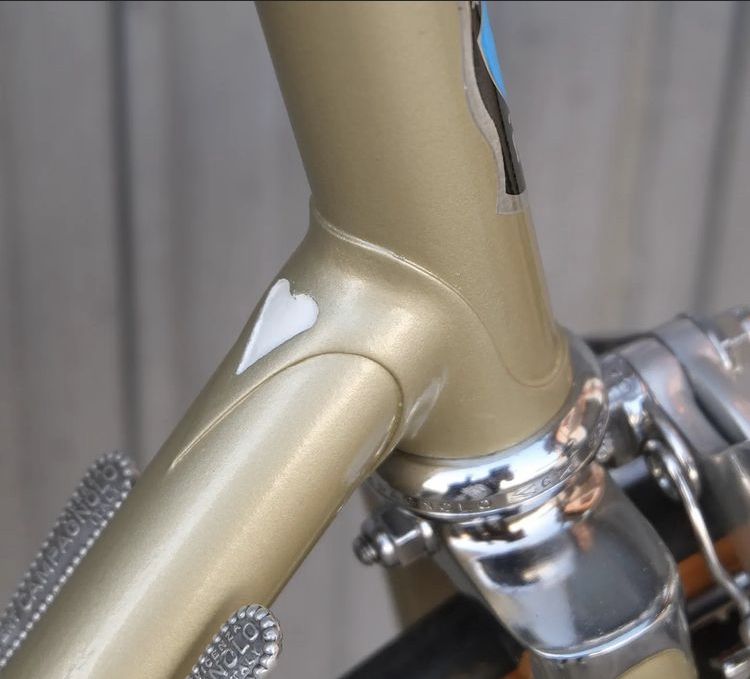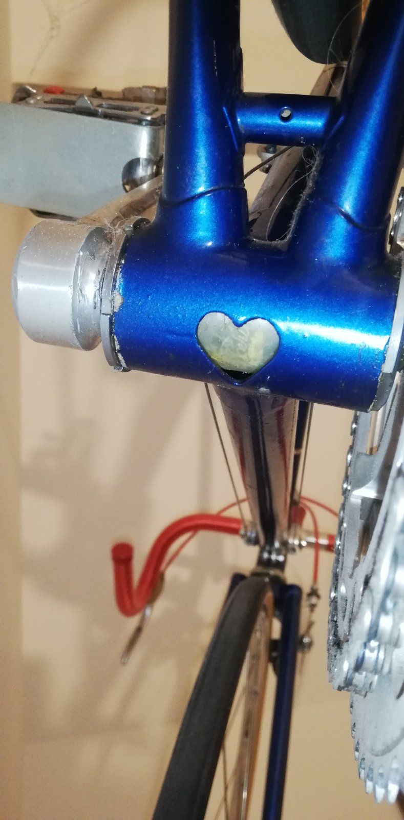 Hier ein De Rosa aus 1969. Es hat noch die Cinellimuffen, jedoch noch keine Gravur auf dem Strebenspiegel oder Gabelkopf. Deins hat beides schon und auf dem Strebenspiegel ist „o“ mit einem Kreis umrandet. Dies kam ab 1973. :) Manche Kriterien können fest datiert werden, andere tauchen auch später auf, erklärte mir Andrea.