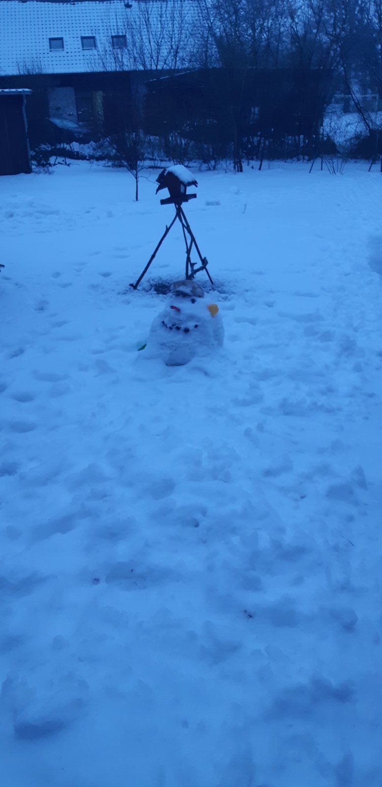Die erste Runde Schnee Ende Januar kam hier im Flachland eher überraschend (zumindest für mich). Als aus meinem Kellerdomizil (neudeutsch Homeoffice) kam war alles weiß und meine Frau hatte mit seelischer Unterstützung unseres Sohnes Fred in den Garten gestellt.