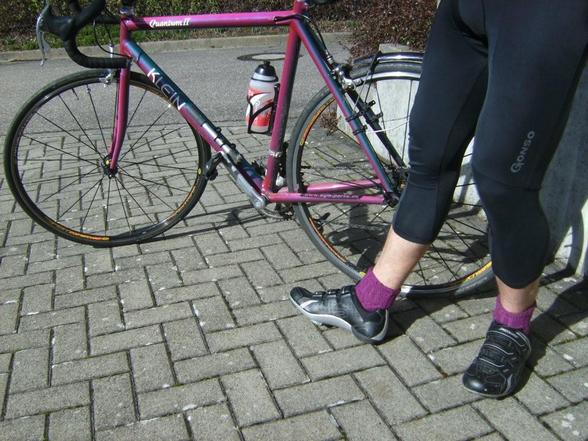 gestern wie fast immer mit selbstgestrickten Socken von hebit gefahren, natürlich farblich passend zum Rad :aetsch: