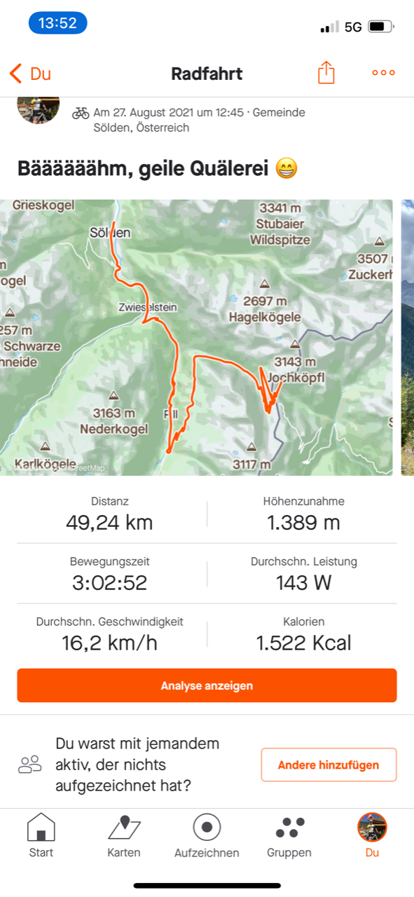 War übrigens aus Gründen des Bahnstreiks diese Woche vorher schon 375 km gefahren (Mo, Die, Do).