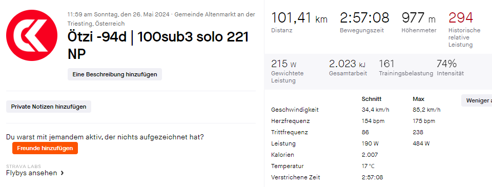 Ich wollte gestern 100km mit 1000hm unter 3h fahren (siehe auch) https://www.rennrad-news.de/forum/threads/100sub3-100km-1000hm-unter-3-stunden-die-challenge.180239/