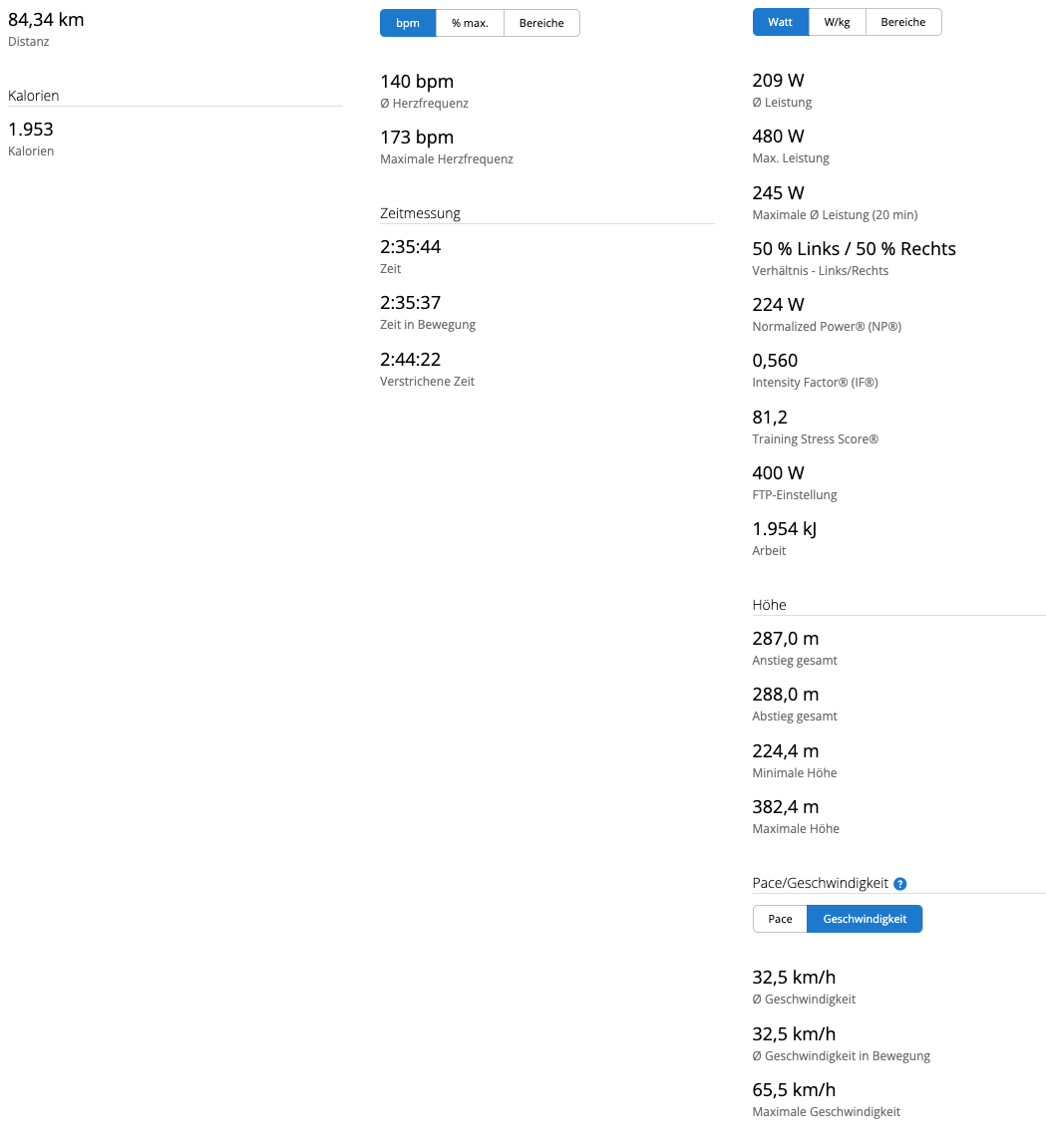 Habe mich gestern gefühlt nach 70km dazu verleiten lassen den 30er übers Ziel zu retten. Wind war mit Nord-Ost auf dem Rückweg richtig richtig arschig. Highlight waren kurz vor dem Ziel auf der Ebene 280W für 31kmhWas hab ichs verflucht.