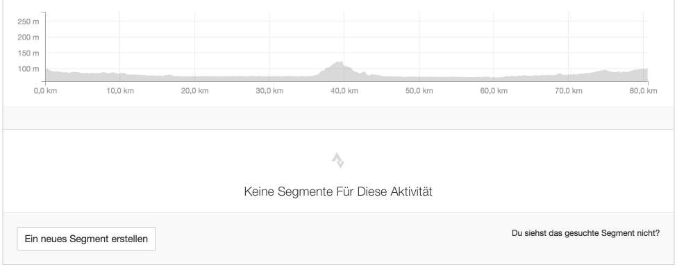 edit: auf dem Bild wird eine Strecke von 80 km angezeigt. Oben hatte ich 100 km geschrieben. Der Anfahrtsweg zum Start des Segmentes beträgt wegen des Datenschutzes insges. 21 km