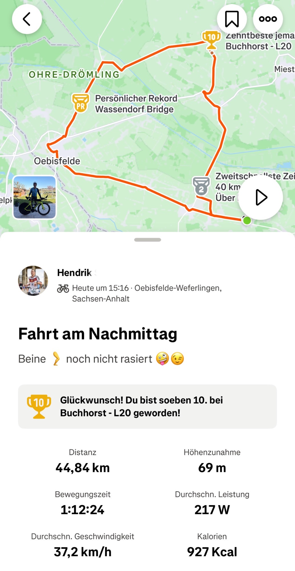 Wenn ich das richtig sehe, ist die Streck nicht gesperrt?Wenn man nicht so stark ist, dass einem die Gänge ausgehen, kann man das auch im Flachen machen. Ich nutze z.B. diese Strecken: https://horst-niewrzol-cup.de/die-strecken/
