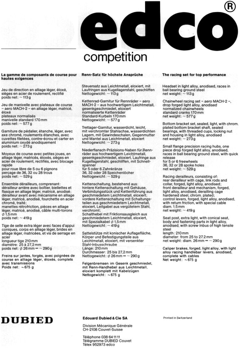 Bei der späteren Ausführung kamen die Zugbremsen von Modolo modifizierte Professional bzw später analog der Mavic 440 nur entsprechend bedruckt mit Edco und mit anderem Finish (Richtung: Hochglanzpolierung)