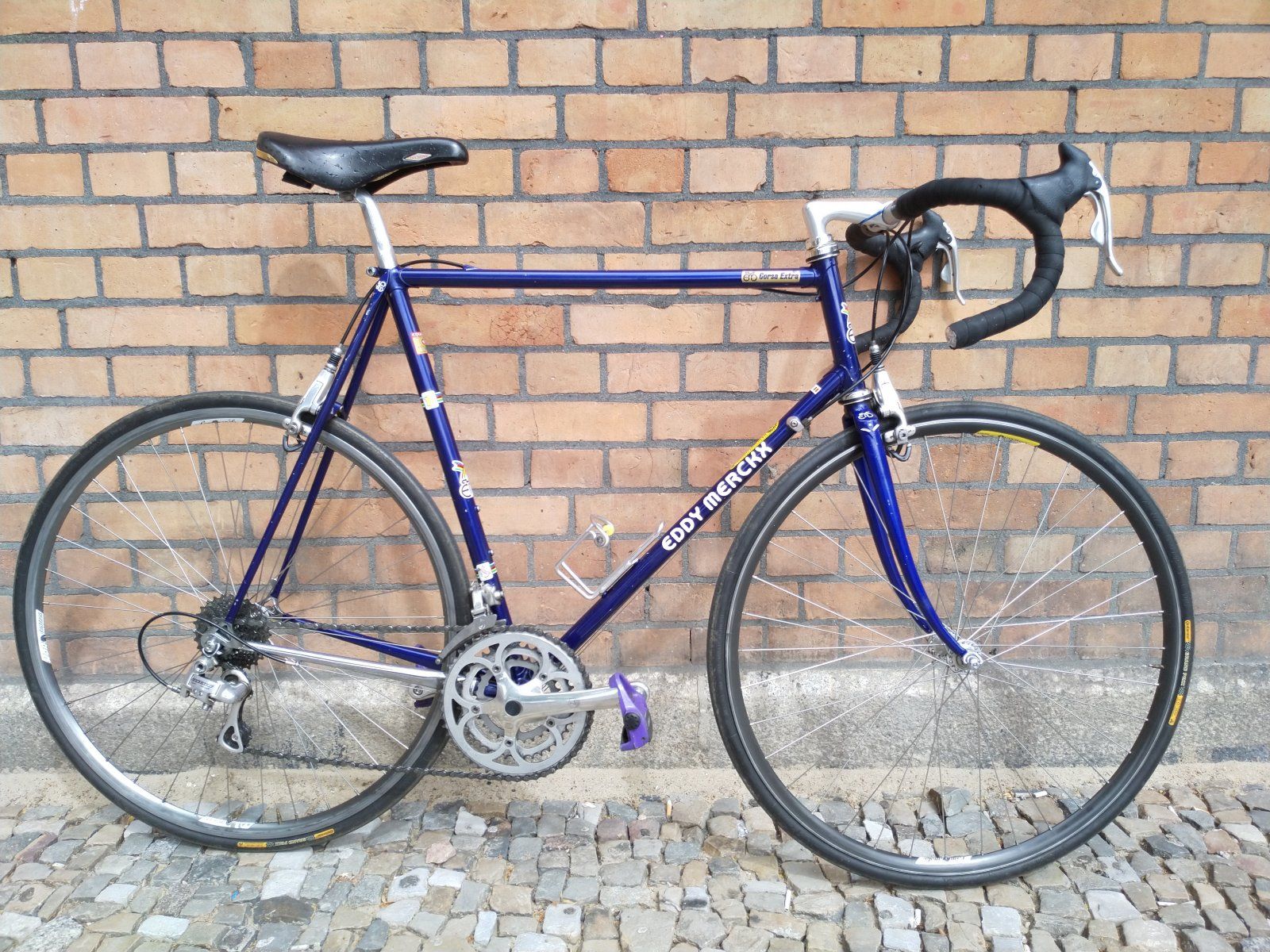 Und dass mein Modell (komplett blau, SLX) so nicht im 1990er Katalog auftaucht könnte daran liegen, dass das Rahmen ja erst 1990 gebaut wurde, also erst im 1991er Katalog aufgetaucht ist (den ich online nicht finden konnte). Oder daran, dass es bei den Merckx-Rädern ähnlich wie bei Gazelle war, wo es ja alle möglichen Kombinationen aus Farben, Rohrsätzen und Anbauteilen auf Kundenwunsch hin gab.