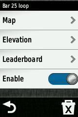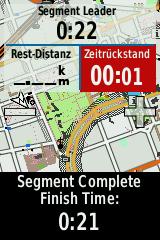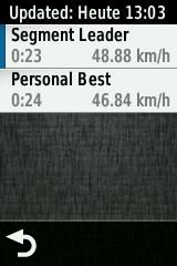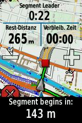 Nähert man sich einem aktivierten Segment schaltet der Edge automatisch auf eine Segment Seite um, auf der das Segment als grüne Linie in der Karte zu sehen ist, sowie die Bestzeit und ob man selbst in Führung liegt oder nicht.