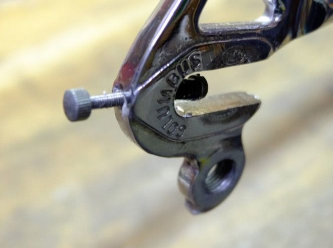 Ich hatte allerdings bereits vor dem eigentlichen Aufbau, ein paar Einstellungen ausprobiert und auch etwas vor bearbeitet. Z.B. habe ich die noch nicht eingespeichte Hinterradnabe, mit dem locker aufgeschraubten Zahnkranz, in den Rahmen eingespannt, danach das Schaltwerk montiert und dieses mit einem Schaltzug zu den Hebeln (nein natürlich andersrum) verbunden. Ich wollte sehen, ob die durch den Einsatz B7 vorgegebenen Schaltschritte bei den Synchro 2 Hebeln, auch mit den Ritzelabständen hinten, übereinstimmen. Taten sie...! Die obere Schaltrolle war immer genau unter dem entsprechenden Ritzel