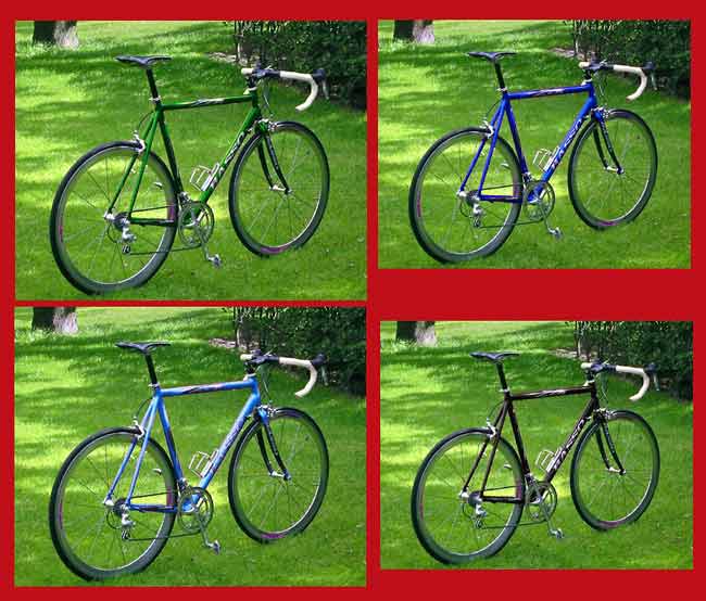 Wenn Du eine Bildvorlage von dem Rad hast, auf dem der Rahmen irgendeine Farbe außer schwarz hat, kann ich Dir verschiedene Varianten in Photoshop machen...