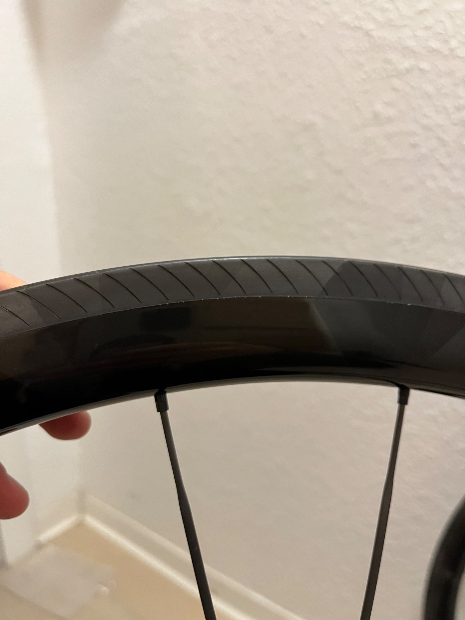 - Die Breite der Bremsflanken ist außerdem leicht ungleichmäßig. Das sieht man gut wenn man auf den Rand der Bremsflanke schaut während sich das Rad dreht. Da schein das Masking nicht so gut zu sein.