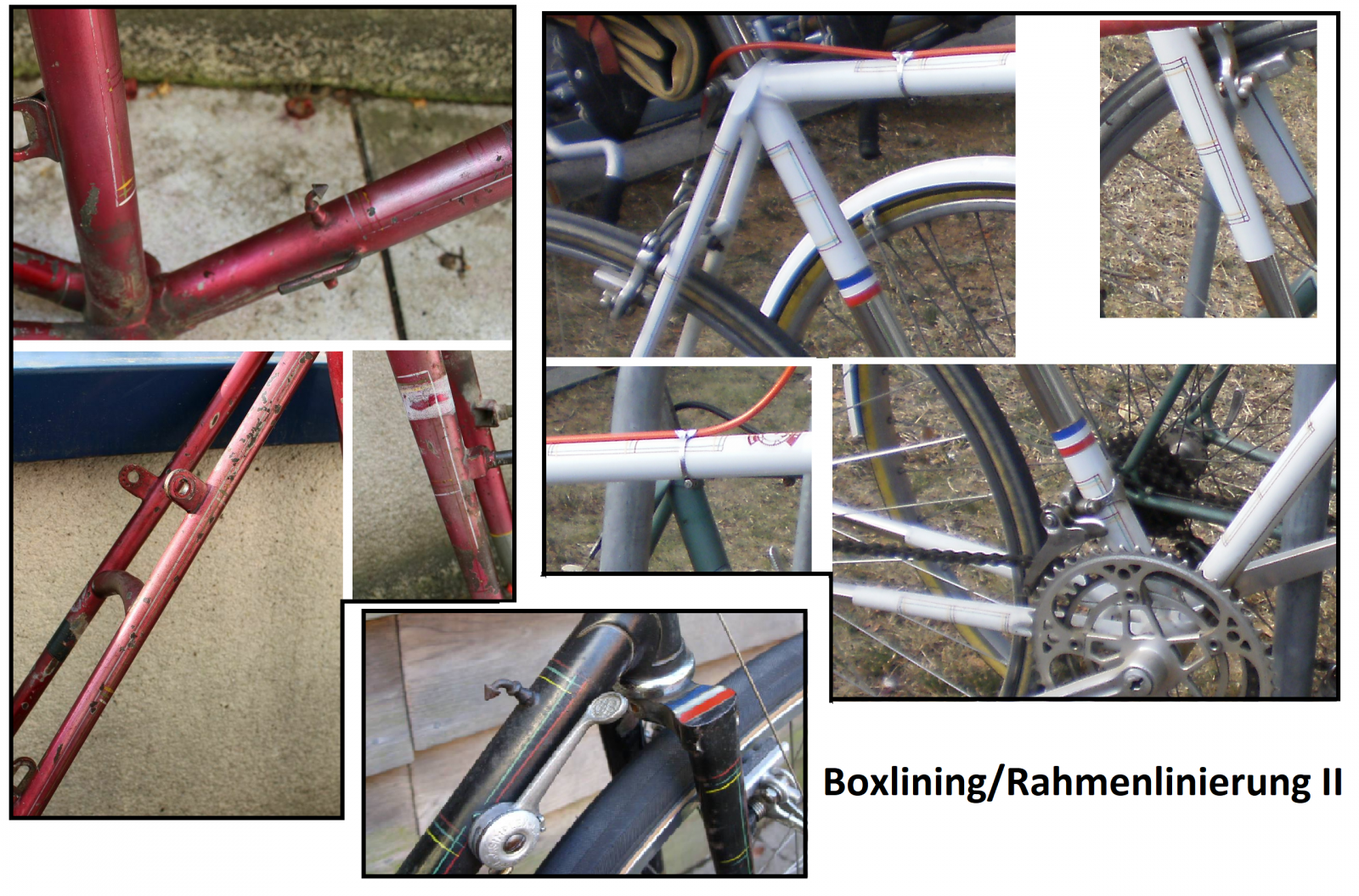 Kommen wir zu stärksten Argument , der Lackierung und vor allem dem Boxlining/Rahemnlinierung. Viele hochwertige Franzosen haben zwar Chromsocken aber wie ich gelernt habe ist es nichts unübliches das es auch hochwertige Franzosen ohne Chromsocken gibt, die Art und Weise des Farbmusters also die Socken und den Bereich am Sattelrohr abzuheben sind allgemein von vielen Fahrradproduzenten gewählt worden, so auch von Alleluia. Ein Rad habe ich sogar gefunden bei dem es fast genauso lackiert aussieht wie bei mir.