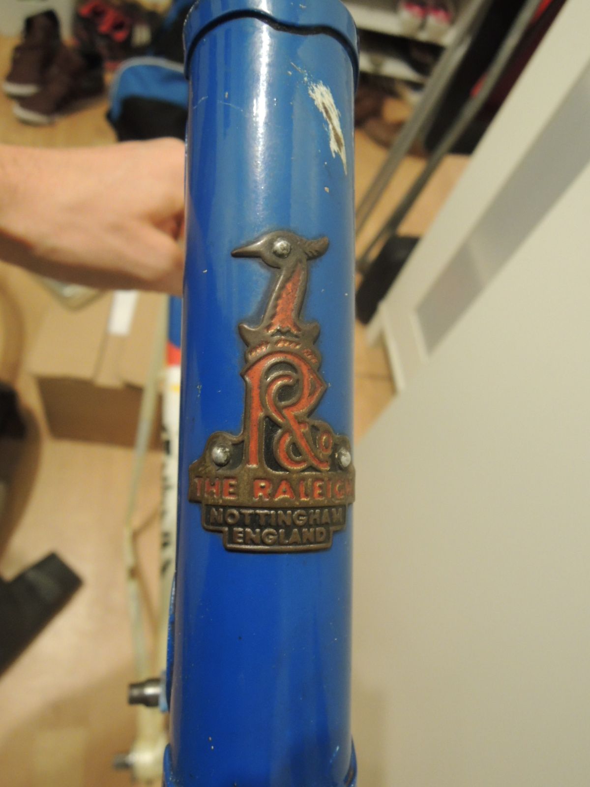 Mich würde interessieren aus welcher Zeit das Rad ist, wie es einzuordnen ist und warum die Anbauteile teilweise mit Raleigh beschriftet sind?