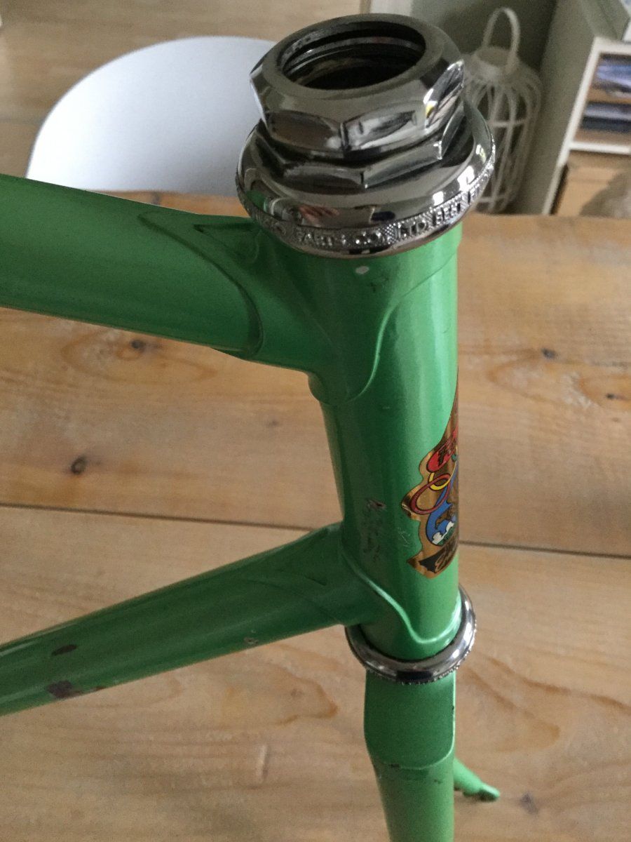 Ich vermute mal das es Baujahr Ende 60iger frühe 70iger ist. Die Rahmenhöhe beträgt c-t gemessen 57cm. Die Laufradgröße beträgt 27" und die