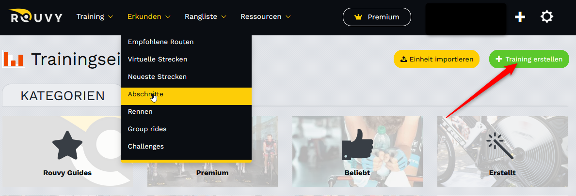 selbsterklärend unter "Erkunden->Abschnitte -> + Training erstellen"Kannst du mal sagen wo man das im Webbrowser findet? Danke!