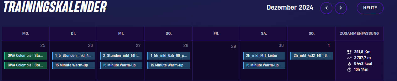 In der Wochenbilanz zählt er im Rider Portal aber alles zusammen - also doppelte Kilometer, doppelte Zeit........