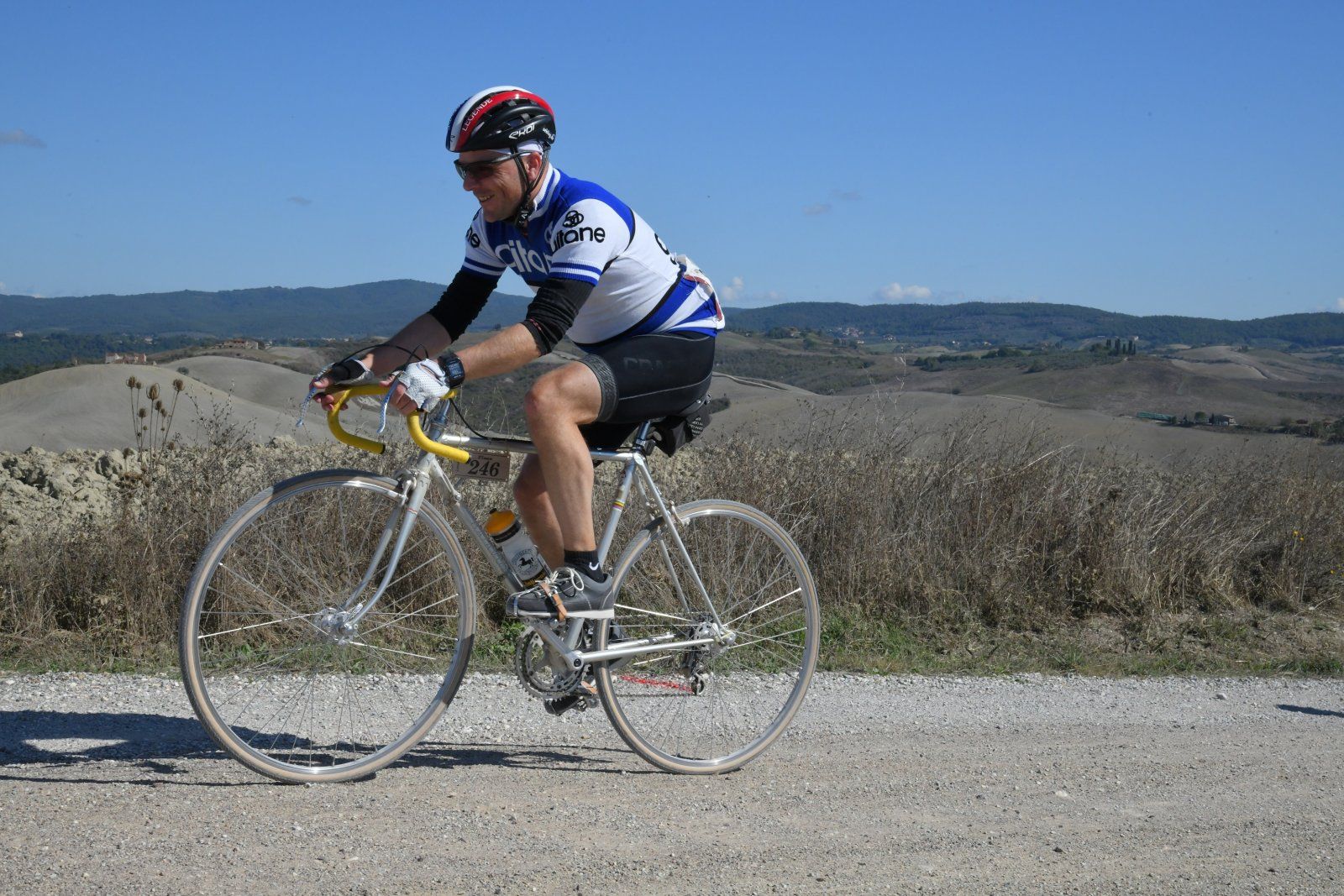 Mir ist da die L'Eroica 2010 in Erinnerung. "erstmal Seidenkrawatten in Florenz kaufen gehen ..."Da fragt man sich um was es dem Herrn überhaupt geht?