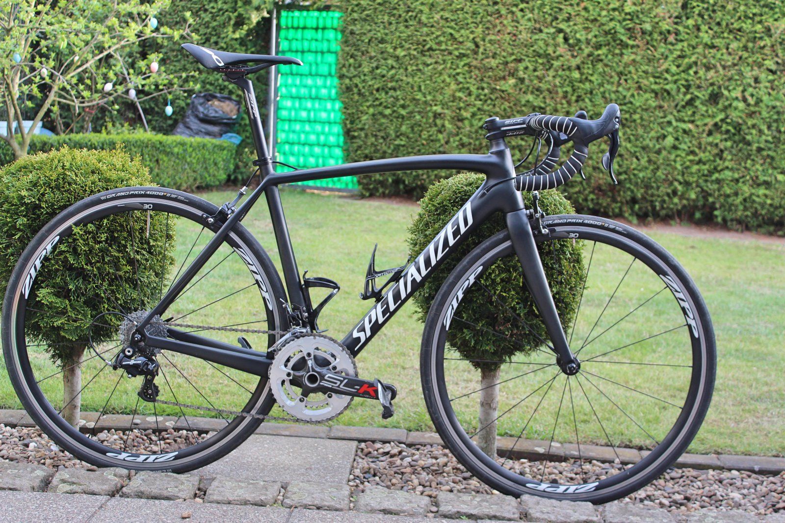 Hier mal ein Bild von einem Roubaix, das ich für mich umgebaut hatte. Wie Du siehst ist die Sitzposition moderat sportlich. Tarmac geht auch gut (2tes Bild).