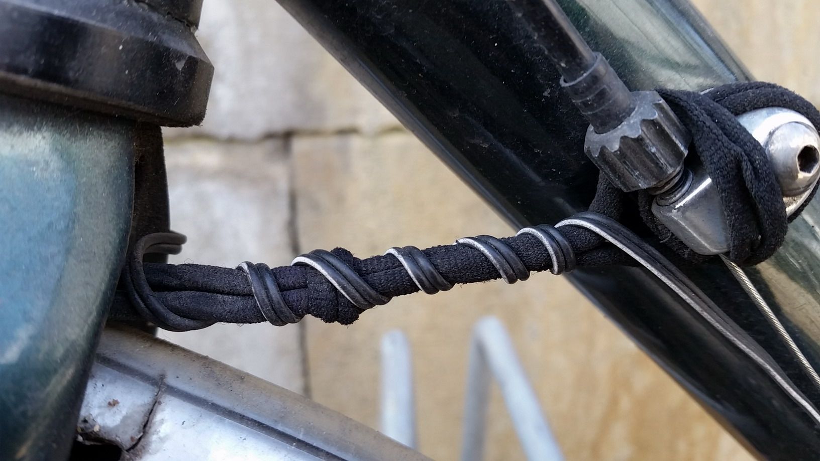 An meinem Stadtrad habe ich da eine Bastel-Lösung mit Hilfe eines Wäschgummis, weil der Rahmen nicht für eine Kabelführung durch den Rahmen vorgesehen ist: