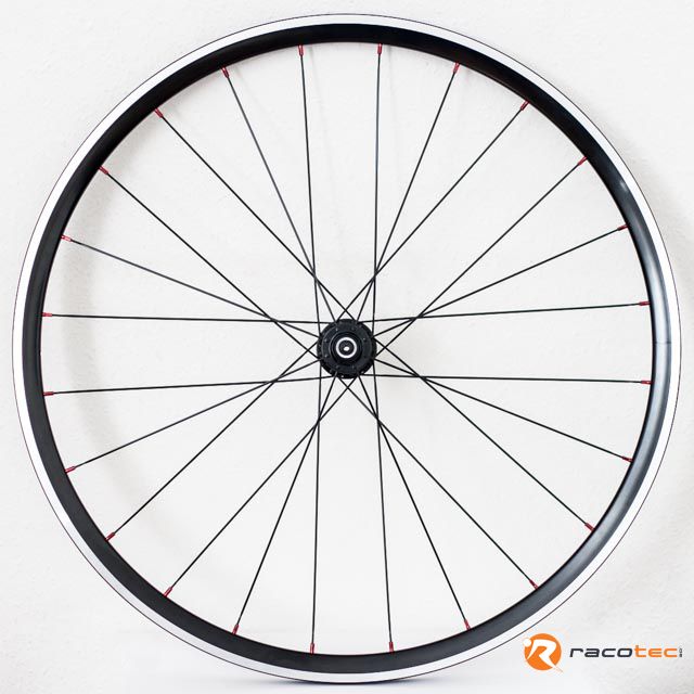 Wenn man rechts 3x kreuzt dann kann man auch rechts die gleichen dünnen DD-Speichen nehmen. Die Spannung ist ja links wie rechts beinahe identisch und man muss dann rechts nicht so anknallen wie bei klassischer Einspeichung. Ich empfehle rechts um 100 Kg, da hat man links 80-90 Kg was für radial immer noch recht viel ist. SInnvoll ist es auch links mit Kopf innen einzuspeichen, dann hat man gut 2 mm mehr Abstützbreite, dadurch mehr Seitensteifigkeit und die Spannung links wird dann auch nicht zu hoch.