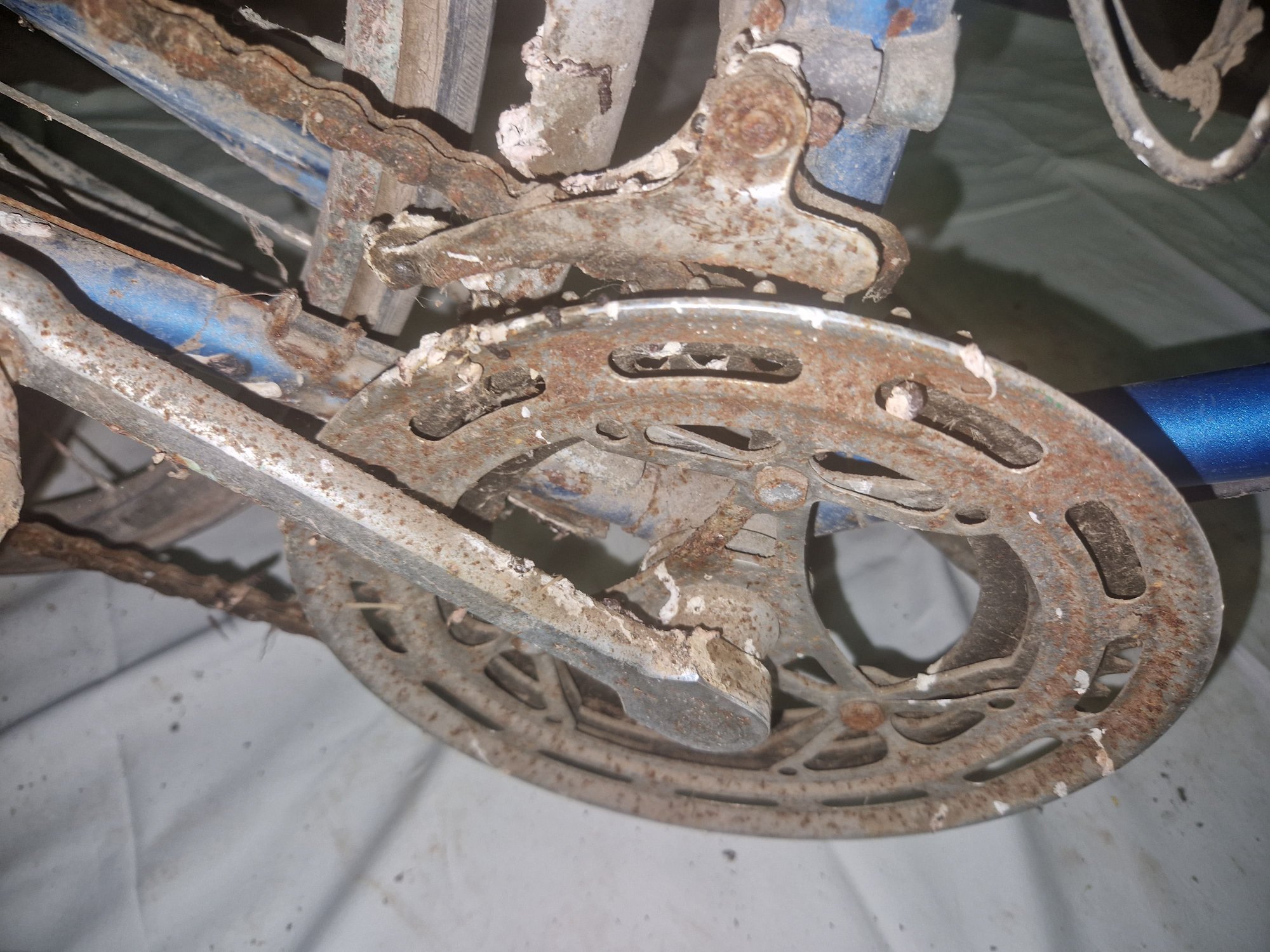 Ursprünglich sollte das Rad nur als Deko an der Hausfassade dienen. Aber dazu konnte ich mich nicht durchringen– also habe ich beschlossen, es zu restaurieren. Ich bin Anfängerin, momentan ist das Rad komplett zerlegt. Alle Teile sind bereits entrostet und entfettet, und der Rahmen soll Ende der Woche sandgestrahlt und neu lackiert werden.