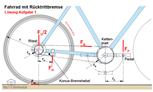Das Drehmoment müßte bei kleinerem Kettenblatt kleiner sein:...abe