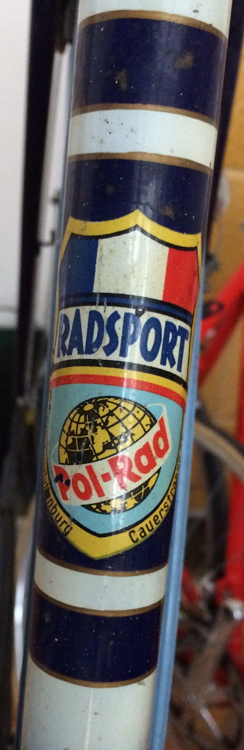 Für eine frühe Datierung spricht auch das Schema der Decals. Es gibt auf dem Sitzrohr noch keine Reynolds-Aufkleber und keine bunten Banderolen. Auch auf dem Unterrohr wird der Polrad-Schriftzug von keinen Banderolen eingerahmt.