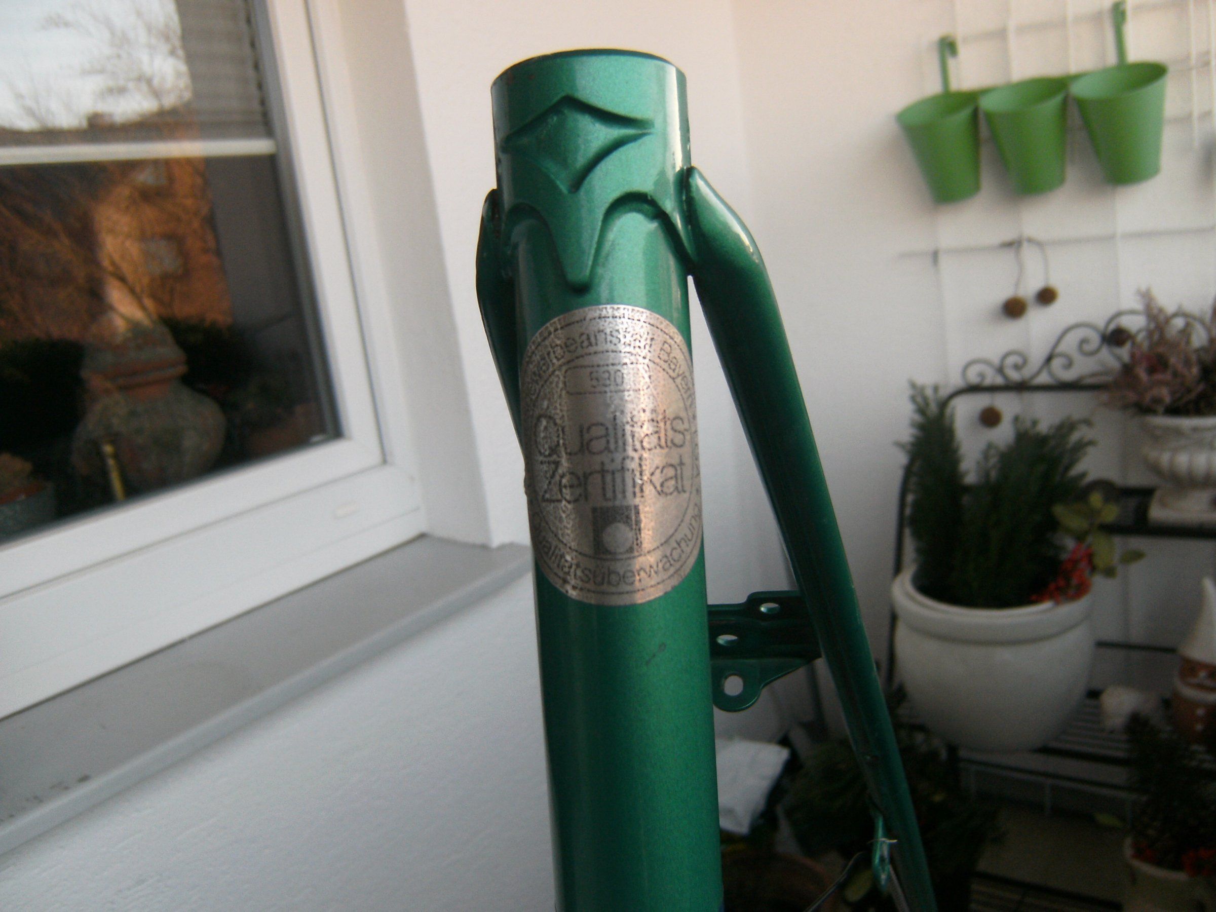 Besteht hier evtl. Interesse an einem Hercules Mixte/Damenradrahmenset aus Mannesmanngeröhr, Typ offensichtlich "Varena", RH 57, in tollem Grün